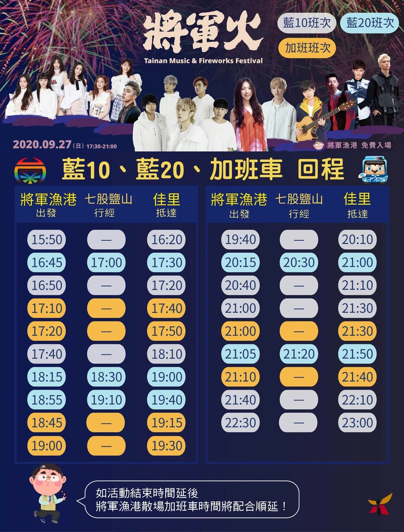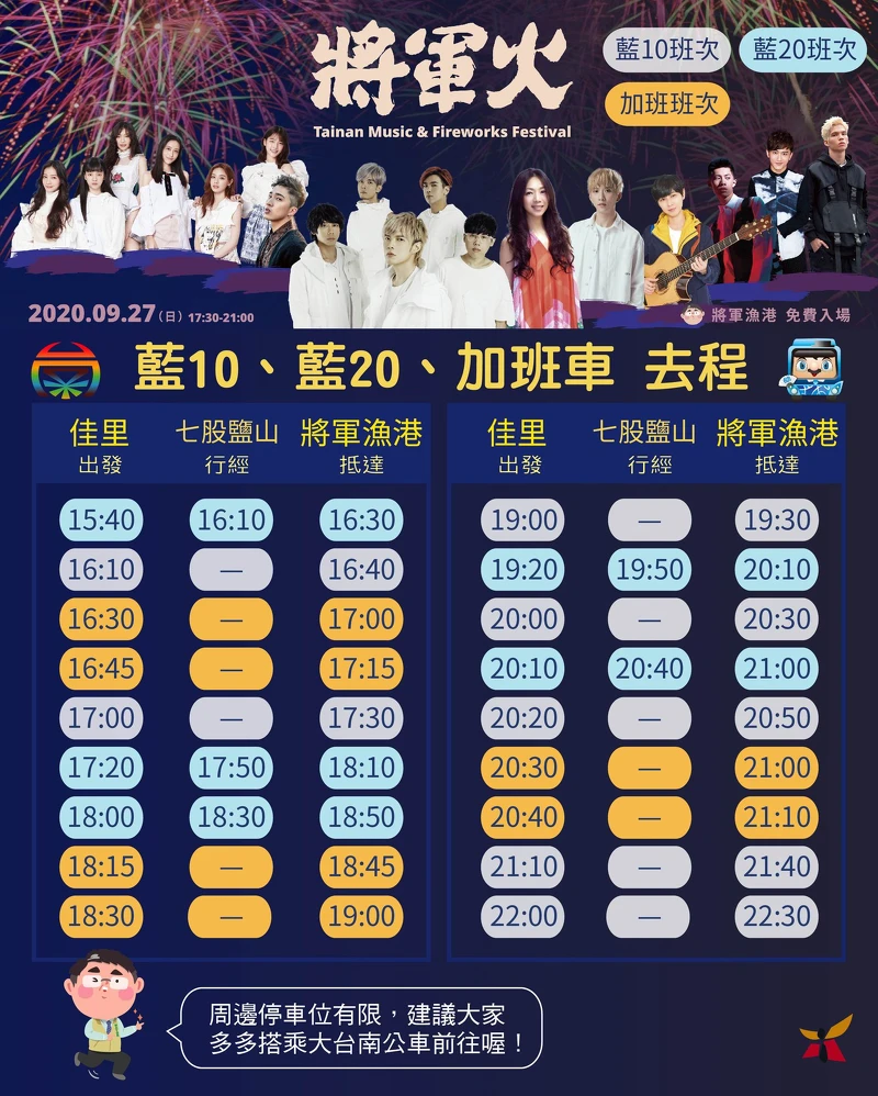 「2020將軍火音樂節」週日登場!長達15分鐘絢爛煙火秀時間、最佳觀賞位置、交通資訊全在這一篇