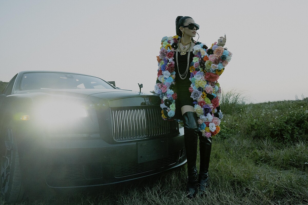 可以看到MV視覺走嘻哈華麗風,蔡詩芸穿上一席百花綻放風衣和牛仔流蘇大外套:「我的每一首歌都有獨特的視覺和造型,一直以來自己的MV造型沒有那麼多的色彩,但這次很特別訂製了用花朵組成的OVERSIZE大衣造型,並以回收的手錶作為花心,呈現超現實主義的街頭時尚風格。」