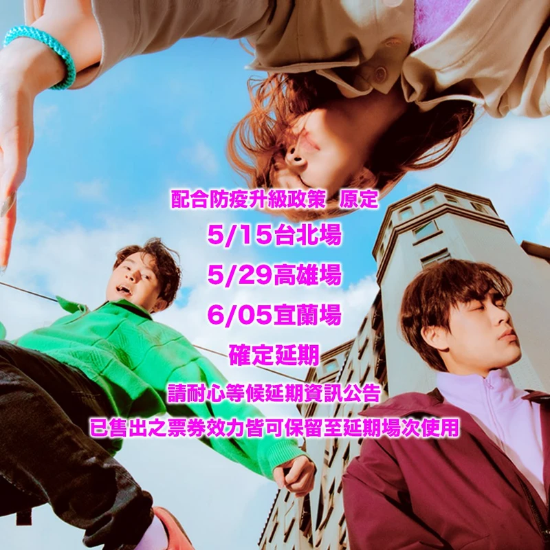 原訂日期:5/15台北場、5/29高雄場、6/05宜蘭場