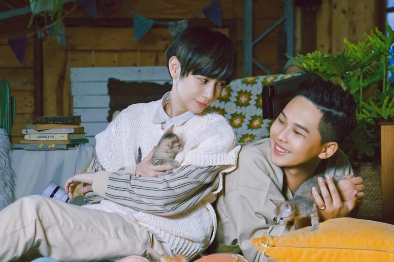 不過在MV拍攝現場,導演特別借調了13隻或大或小的貓咪助陣。其中四隻來自流浪動物中途之家、不滿兩個月的幼貓讓小魏頻頻喊被療癒到了:「幼貓爬來爬去互相咬著玩,然後有兩隻就爬到我身上睡著了,真的是太療癒了。」拍攝過程中,雞丁還被一隻不滿一個月的幼貓咬了手指,但卻滿心歡喜的說:「看著幼貓把我的小姆指當奶瓶咬到睡著,我本來是狗派,今天跟貓咪相處之後,覺得貓咪也超可愛的。」讓原本擔心他被咬傷的小魏也笑出來。