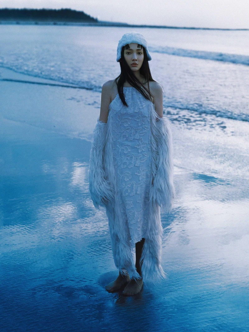 在拍攝林映唯〈誰也還醒著〉單曲平面主視覺時,團隊更特別開拔至海岸拍攝,「那一天風超大,所有工作人員都很狼狽,地毯一直飛起來,頭髮一直狂吹。」小美的頭髮被風吹到都黏在臉上,甚至一陣狂風襲來,燈光師的反光板也瞬間被吹到海裡,但當時深怕危險,攝影師大喊算了,就讓反光板隨浪而去,此外,因為休息區和拍攝的地方相隔很遠,所以如果忘了拿東西,就得兩邊折返跑,「回想起來像是團隊的體能訓練!」所幸很順利進行完拍攝,「有拍到很喜歡的照片!」此外,造型的部分也別具巧思,林映唯笑說:「毛絨絨的,感覺像是一隻小綿羊的感覺,象徵陪著睡不著的人,一隻羊、兩隻羊,數起羊來!」