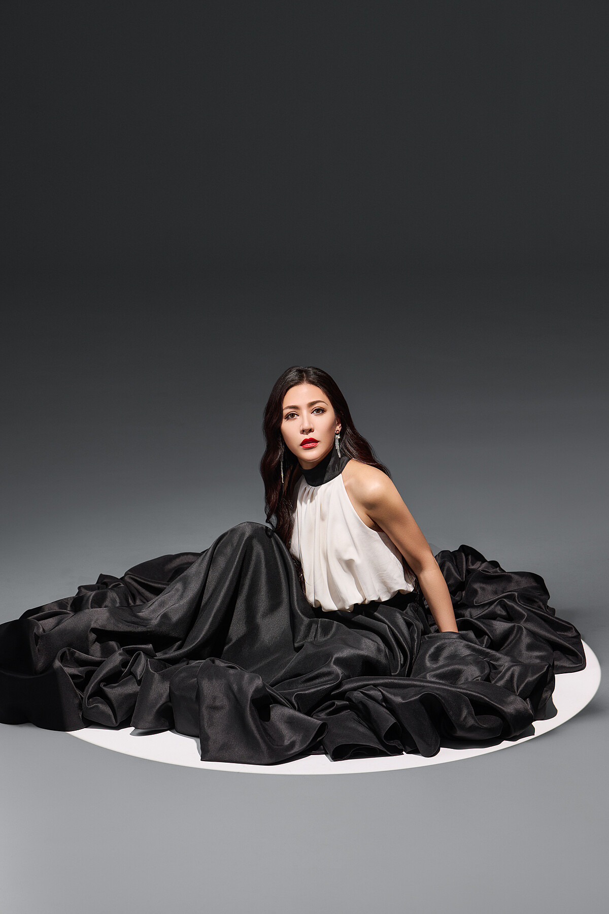 另一套她喻為「小太陽能發電板」,身上佈滿很多像是在發電的亮片,穿起來有種頹廢的華麗感,完美吻合新專輯首波主打歌曲〈貪〉,飽滿地表露對一切的渴望。