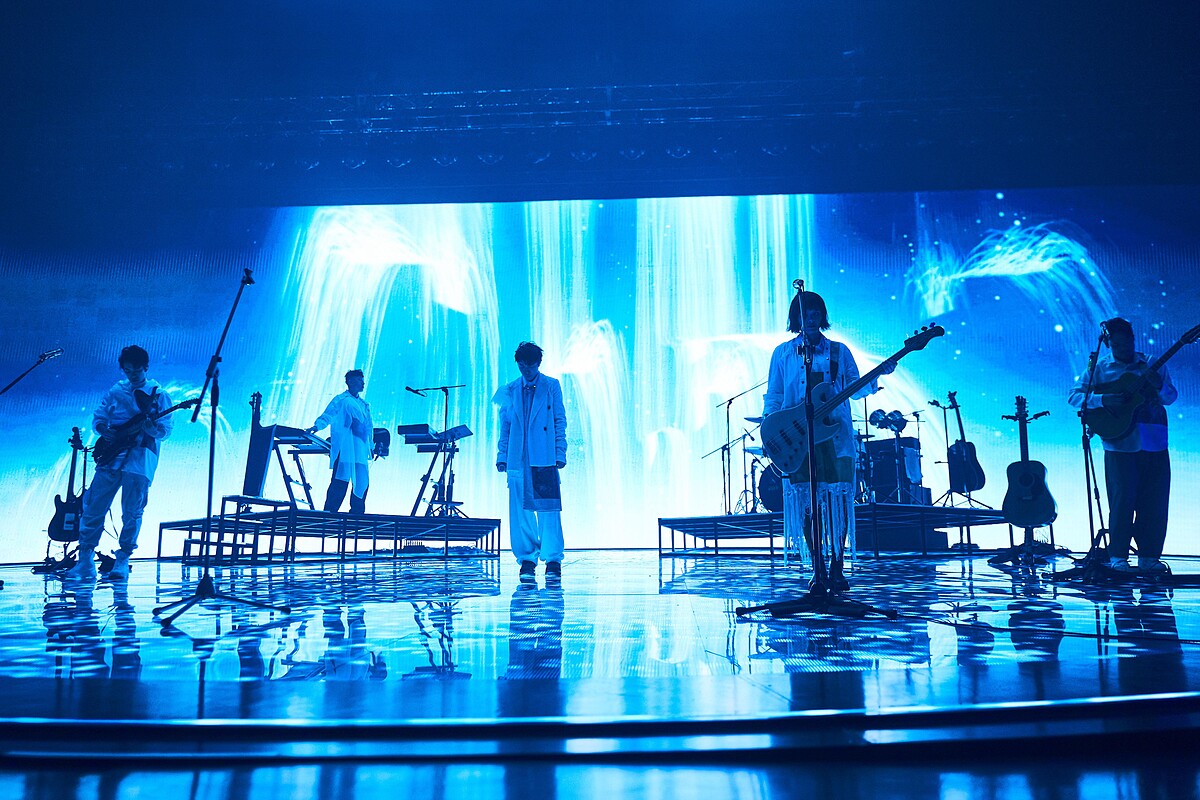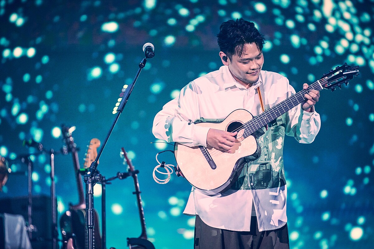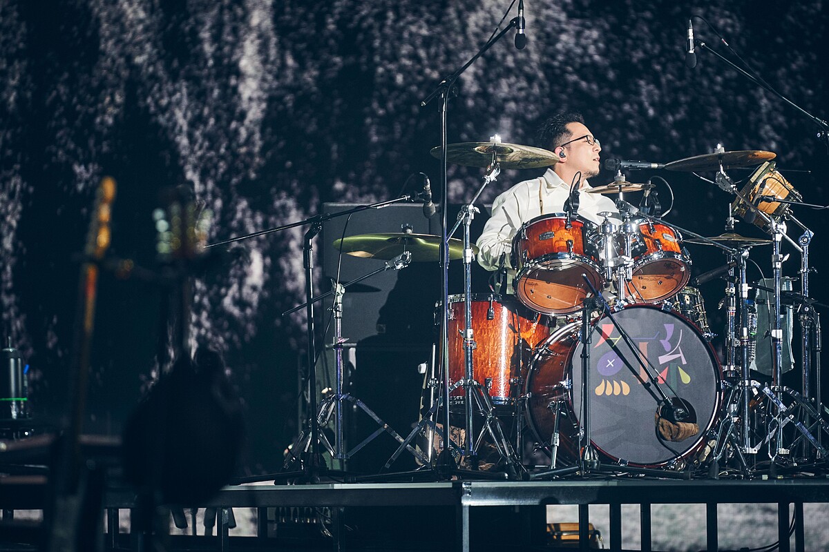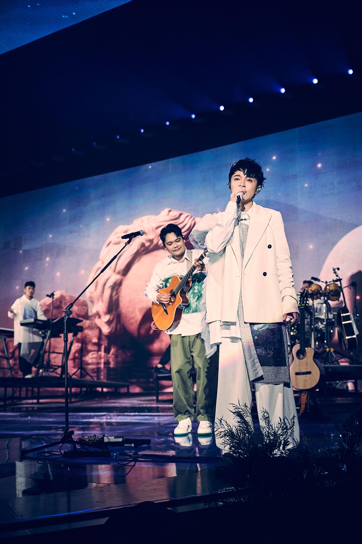 池塘水波粼粼,傳說池塘繞三圈會到未來,開場像從冬眠中清醒過來,光束貫穿音樂的「魚宇宙」,青峰、阿龔從天而降,14米高的布幕瞬掉,像是在半夢半醒中,用〈Must Keep Singing〉宣告不管發生什麼就是要唱下去的心情!
