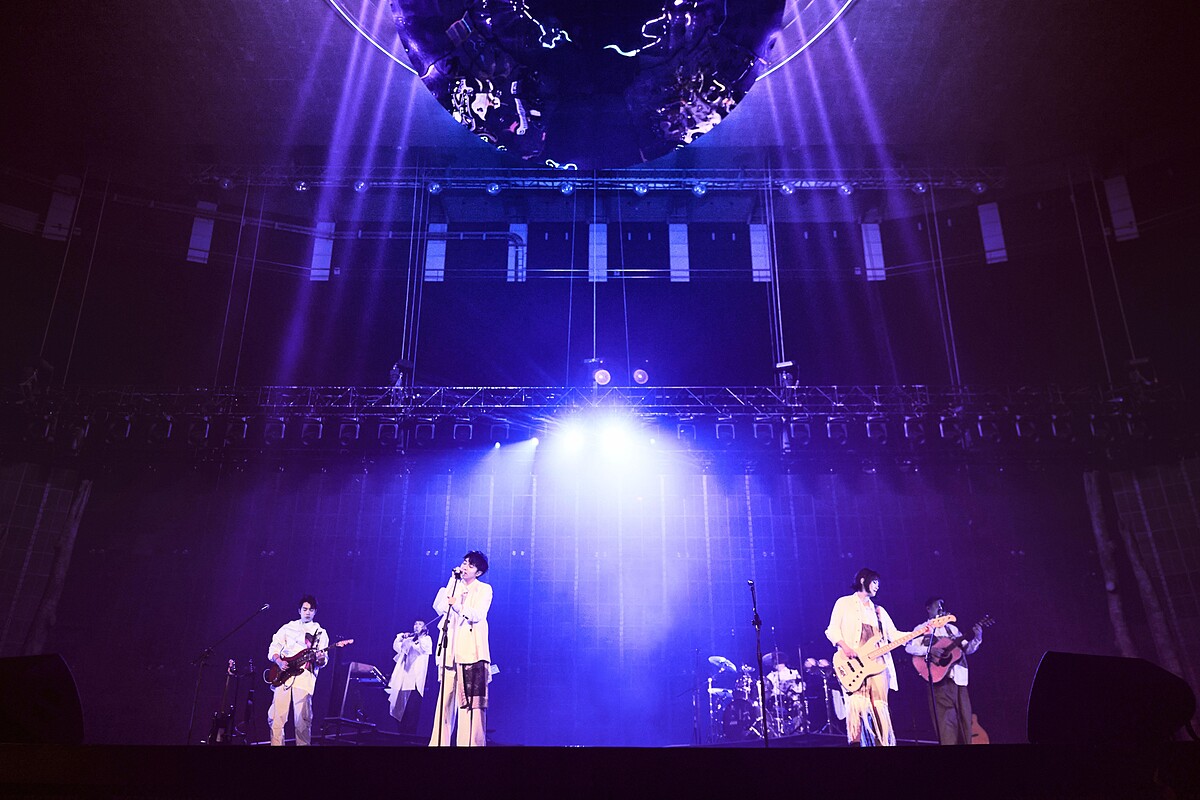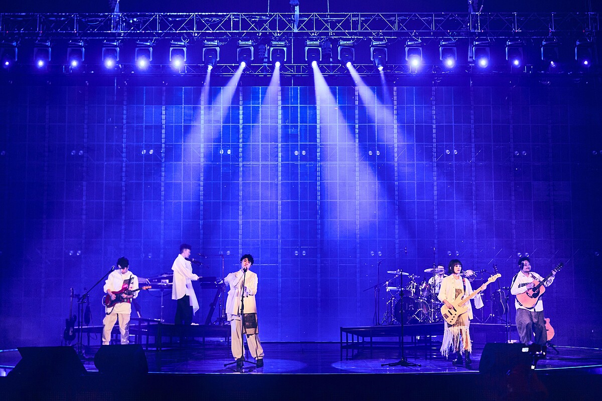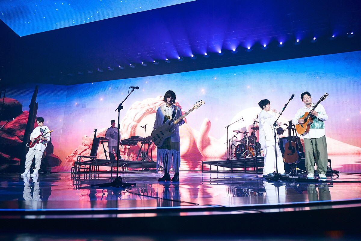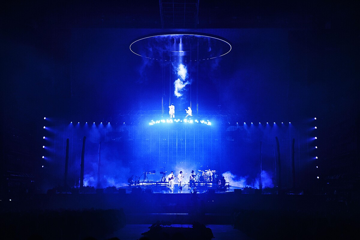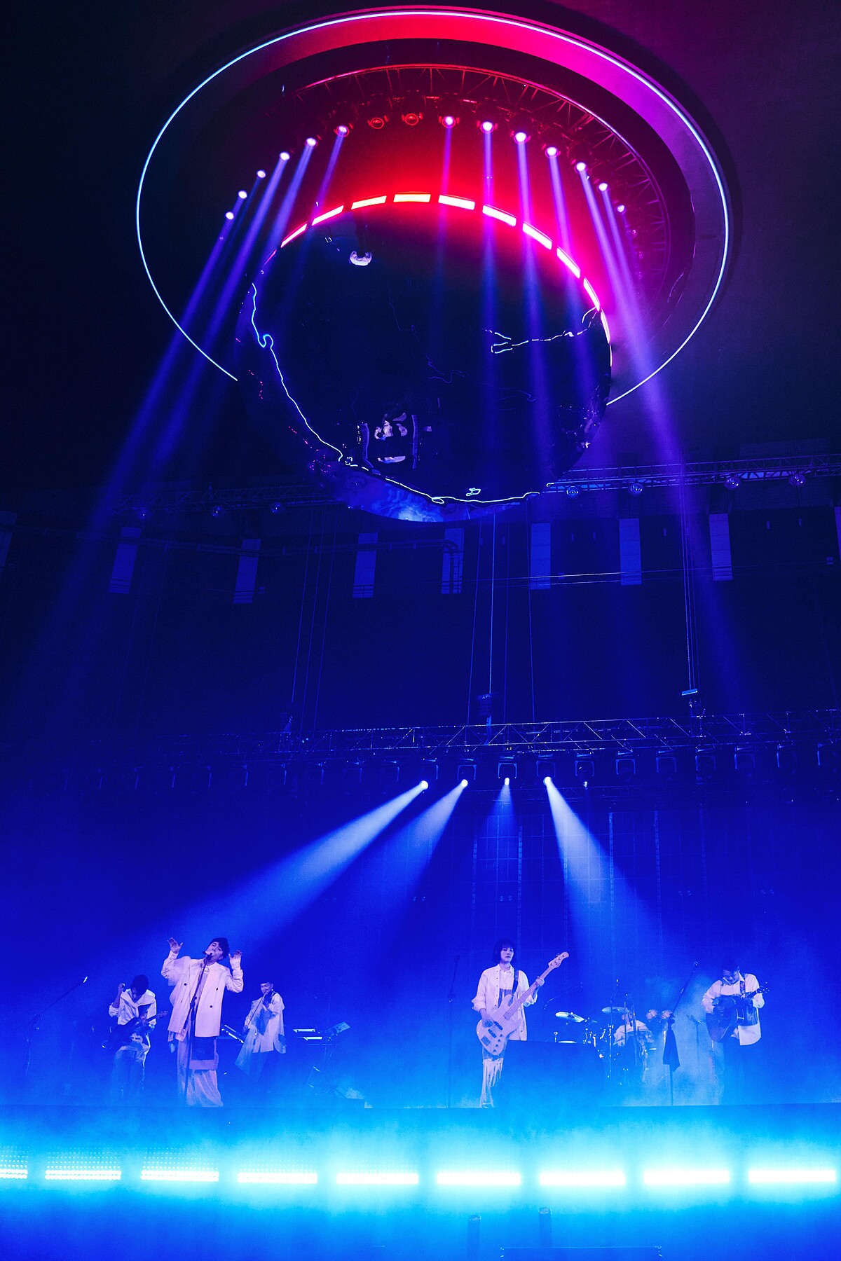 池塘水波粼粼,傳說池塘繞三圈會到未來,開場像從冬眠中清醒過來,光束貫穿音樂的「魚宇宙」,青峰、阿龔從天而降,14米高的布幕瞬掉,像是在半夢半醒中,用〈Must Keep Singing〉宣告不管發生什麼就是要唱下去的心情!