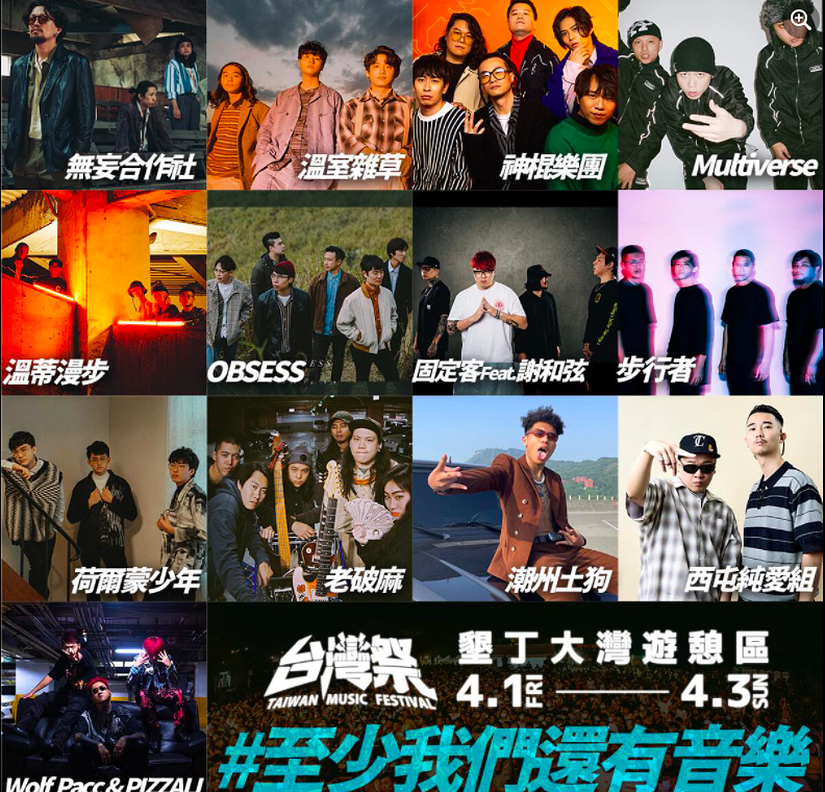 完整卡司:張震嶽、玖壹壹、美秀集團、拍謝少年、怕胖團、血肉果汁機、康士坦的變化球、傻子與白癡、無妄合作社、南西肯恩、海豚刑警、溫室雜草、神棍樂團、P!SCO、胖虎、OBSESS、固定客、謝和弦、淺堤、Multiverse、荷爾蒙少年、溫蒂漫步、打倒三明治、老破麻、餵飽豬、冰球、潮州土狗、西屯純愛組、Wolf Pacc & PIZZALI、步行者、破繭而出、海岸乾杯、男子漢、SADOG、月宵◇クレシェンテ(樂團編制)、等阮返來、深深一擊、鐵擊、時不我予、粗大BAND、秋山