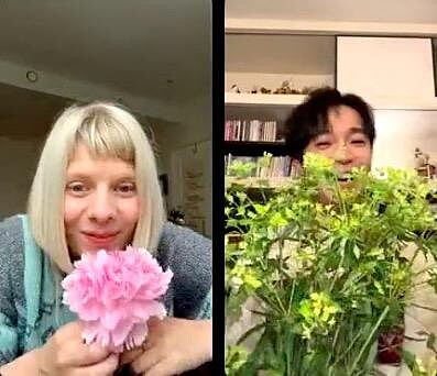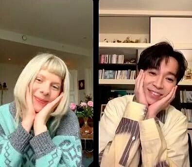 直播途中,歐若拉的電話鈴聲突然響起,超生活化的突發狀況令人會心一笑,青峰也分享超像他們首次見面時的情況:「當時我們第一次開視訊會議,突然她的爸媽按了門鈴,就直接加入了會議,只好跟她爸媽打聲招呼。」