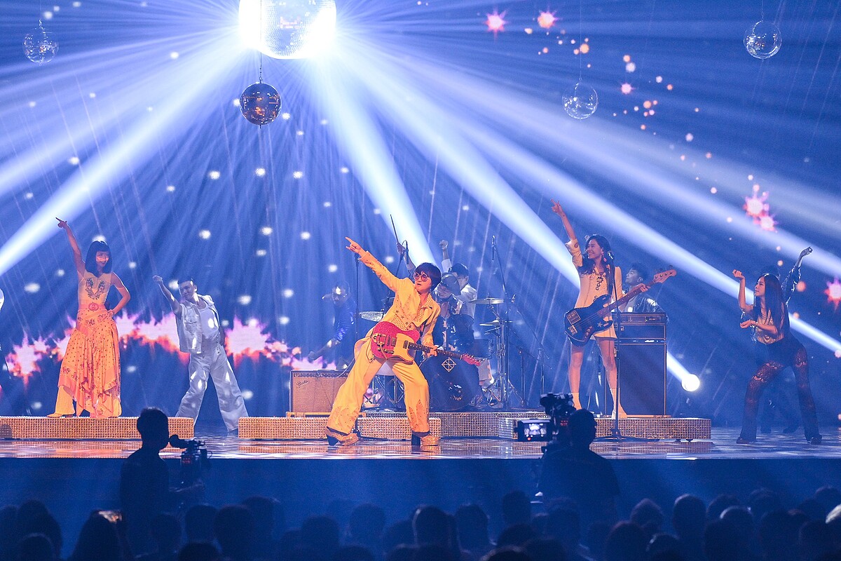 這次不論是舞台效果、燈光、服裝都超級復古,非常適合以復古歡快風格為創作特色的旺福!這次特別以 Disco 曲風詮釋台語經典歌曲〈星星知我心〉,致敬今年離開我們的原唱者文夏老師。在活力四射的表演力搭配色彩繽紛耀眼的舞廳背景設計,讓觀眾感受新舊世代融合的完美演出!