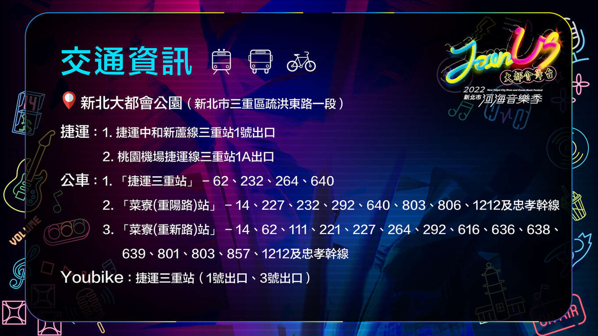 自8/6起,2022新北市河海音樂季連續三個週末的下午4點到晚上9點,皆會邀請5組樂團歌手輪番演出。而到8/27~28就交棒給新北大都會公園,多元風格與橫跨世代卡司陣容,帶來一場場有海風、音樂與夏日熱情交織而成的音樂洗禮。活動為免費入場,立刻揪人Chill起來!