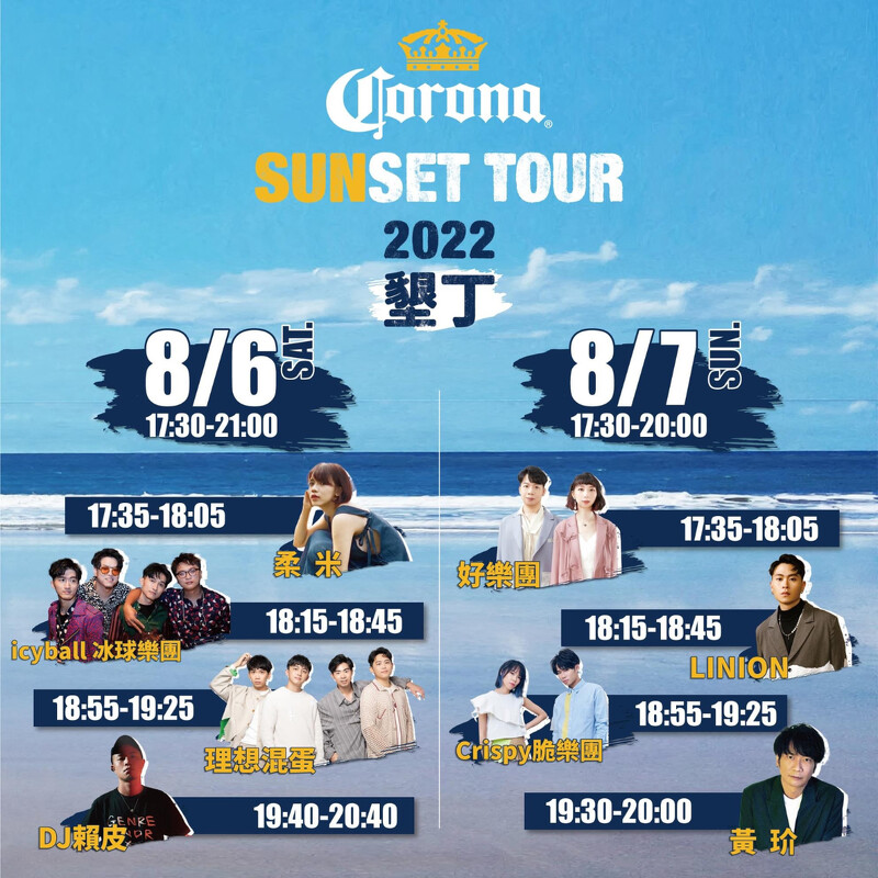 超愜意的2022 Corona Sunset Tour來台灣了!8組演出卡司打造愜意的日落時分,首站選在墾丁,這個周末就出發!