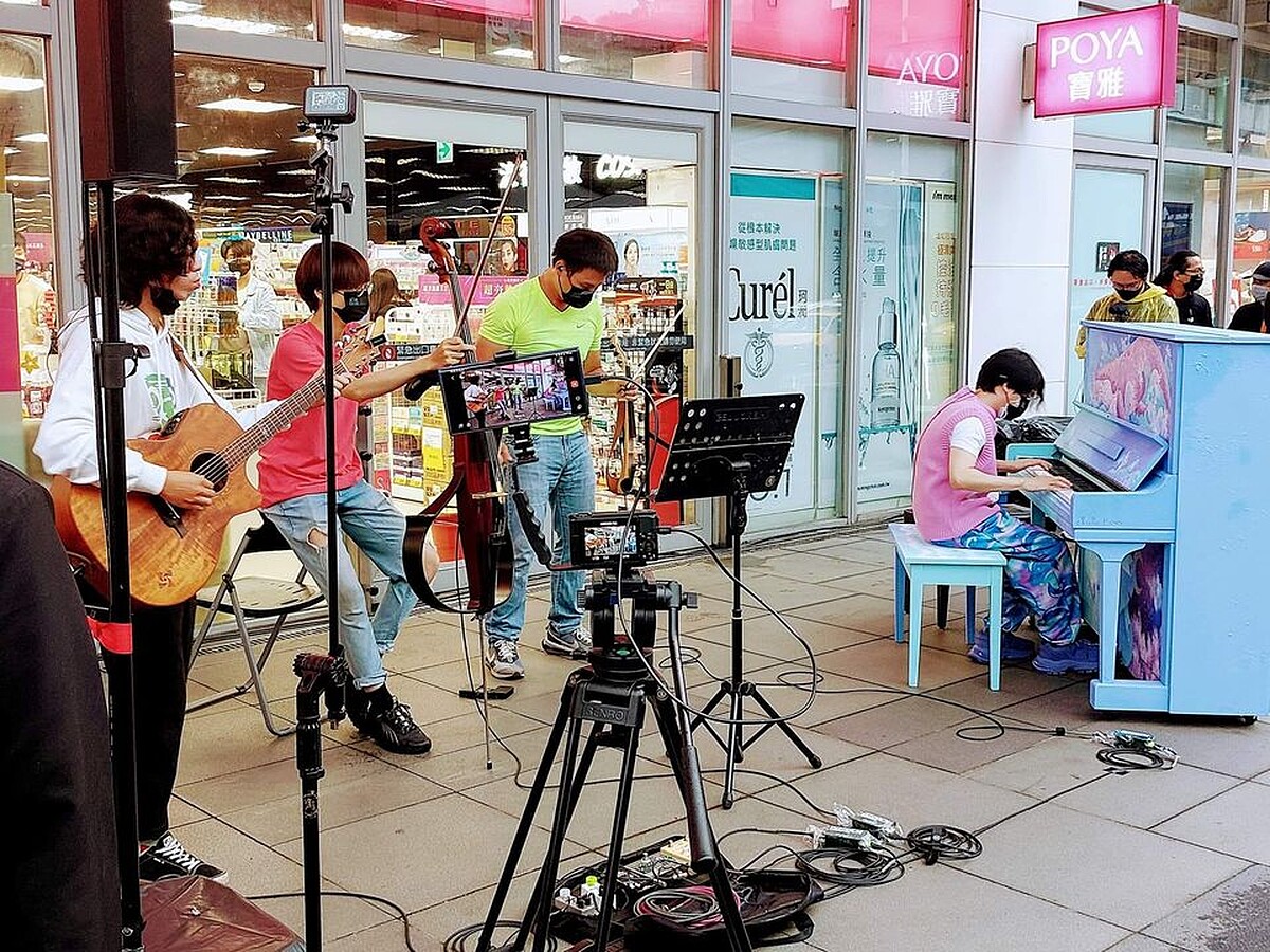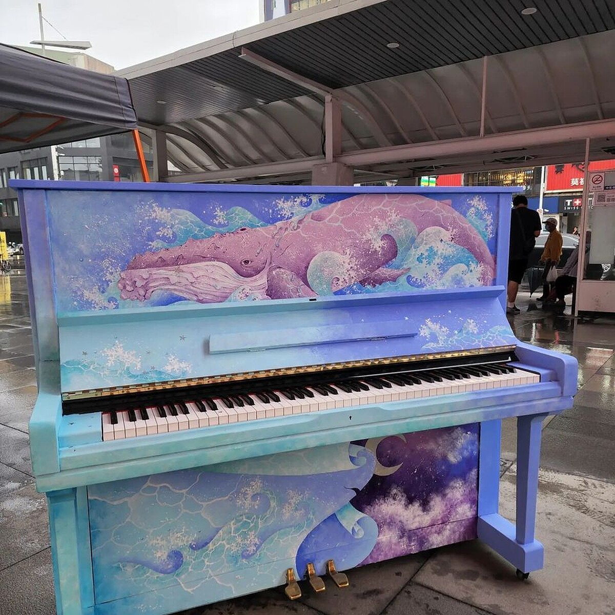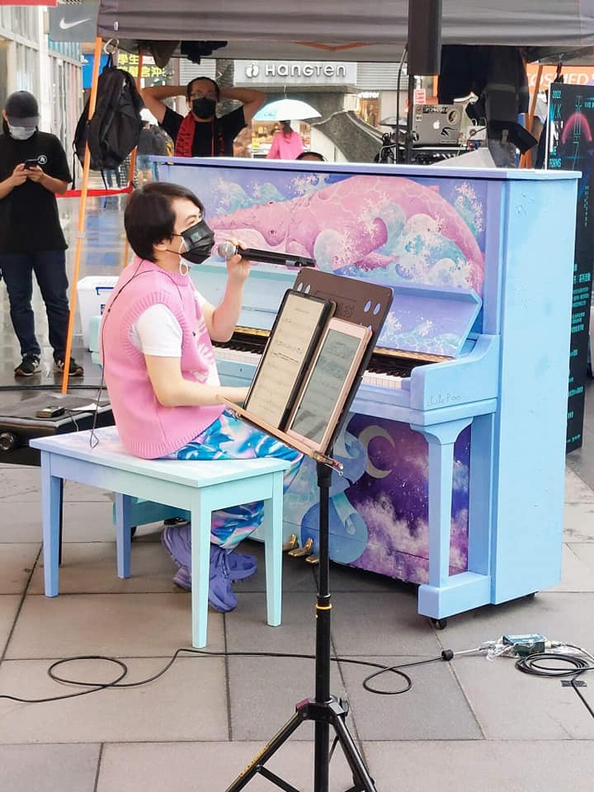 45分鐘的快閃演奏會上,V.K克演奏著與藝術家查理宛豬合作的彩繪鋼琴,坐在海潮鋼琴椅上,彷彿像是鋼琴上的鯨魚遨遊大海而濺起水花。音符,像是落在琴鍵上的天空繁星一般,而此刻由V.K克的指間彷彿正在演奏星星的故事一般。