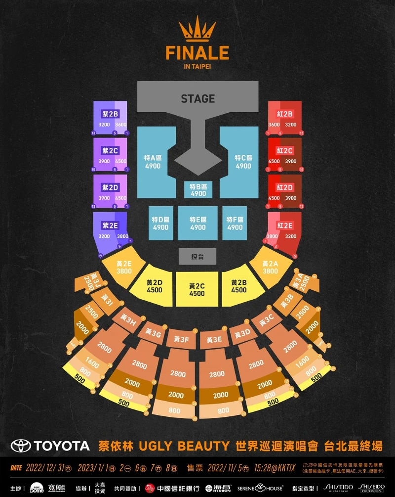 《TOYOTA蔡依林UGLY BEAUTY世界巡迴演唱會FINALE in TAIPEI台北最終場》將於11/5下午15:28於KKTIX售票系統(http://kktix.com )正式啟售 (13:28中國信託卡友限區限量優先購票,含簽帳金融卡,無法使用大來、AE、銀聯卡)