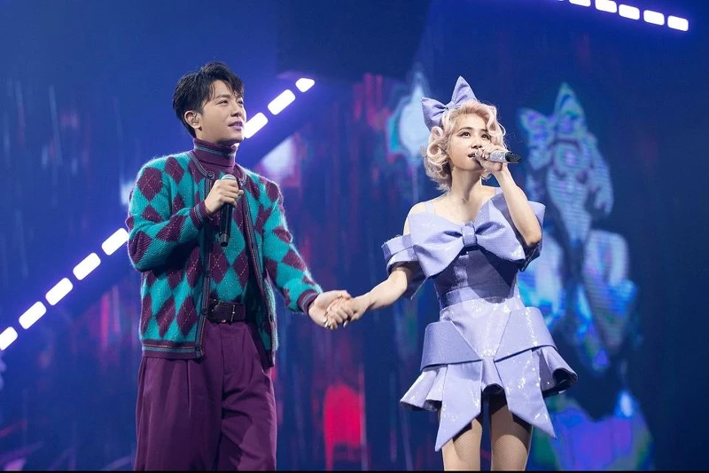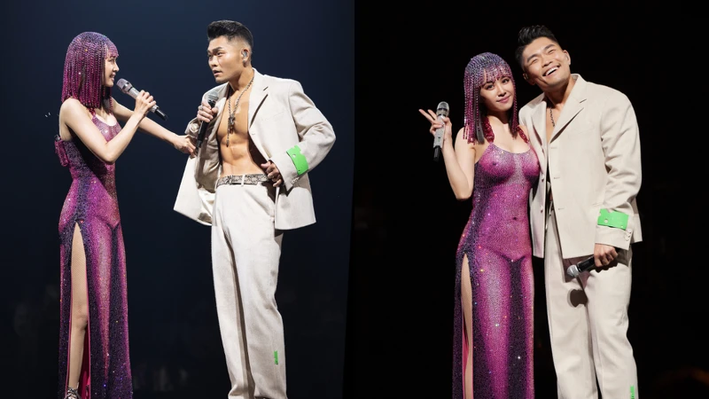 今晚化身成紫羅蘭蝴蝶芭比的Jolin,還特別邀請韋禮安擔任首位嘉賓,兩人不僅合唱「UGLY BEAUTY版」的〈如果可以〉,韋禮安更挑戰Jolin的電音情歌〈都沒差〉與天后共舞。