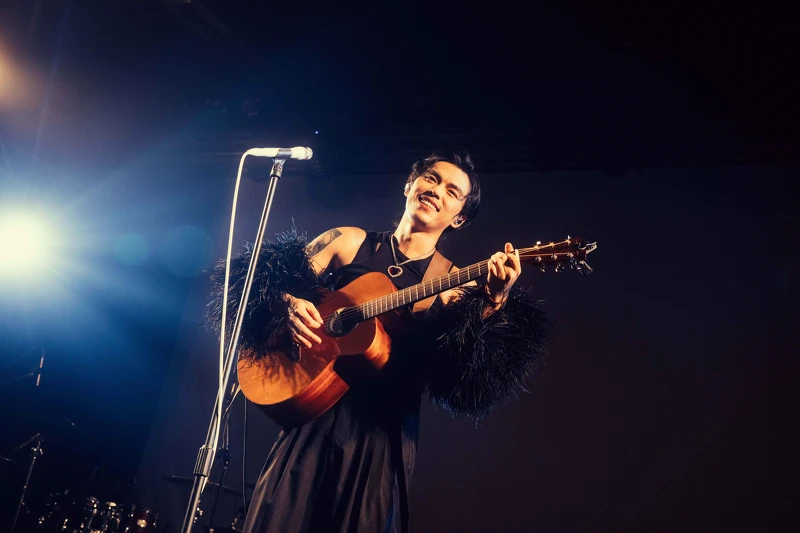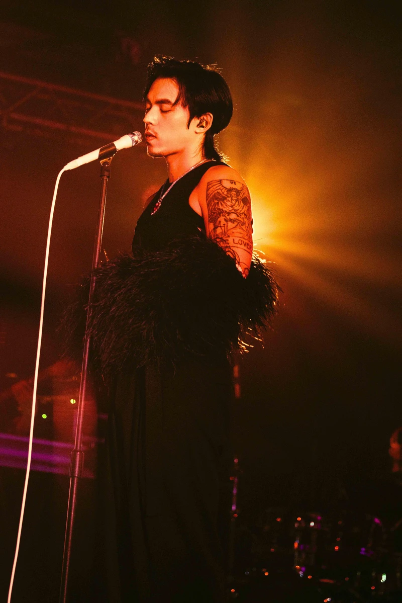 而在演唱其中一首新歌〈不要靠近〉前,HUSH 則面色凝重地闡述自己在籌備新作的赤裸心聲。他說面對如今的音樂市場,難免會有種「Go big or go home」的感受,接著場燈一暗,緩緩唱到歌詞中的一句「我也只剩下羽毛而已/你會珍惜還是同情」,不只呼應著第二套造型的羽毛裝,也讓人聽見創作者在交出作品時,是如此的真誠與忐忑。