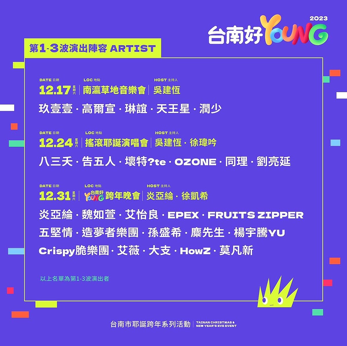 - 2023台南跨年有近20組卡司!韓團EPEX嗨炸舞台,炎亞綸壓軸變主持,整個12月超好玩
