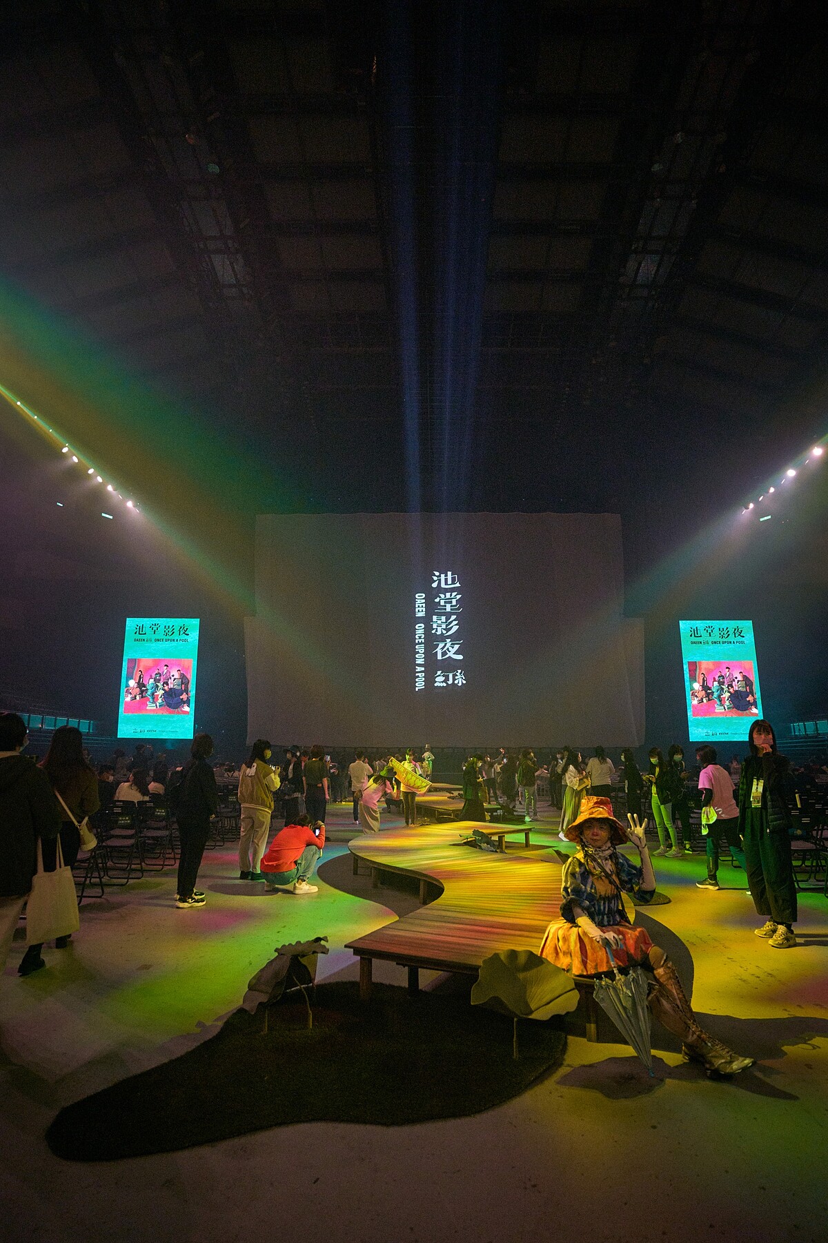 今晚開場前大家都提早入場來看荷花沼澤地的一樓觀眾區,蓋起了美麗的木棧道,捕捉街頭藝人和阿龔的驚喜身影並拍照,是最美麗的限定版打卡景點,第三首歌<遊樂>更是今日限定曲;而散場的歌曲還特別改選收錄在復刻Vol. 3《無與倫比的美麗(魚版)》裡的〈最後一夜(魚in summer)〉,感謝大家一起為「季節限定版」的《池堂影夜》演唱會畫下超感動的最後一夜!