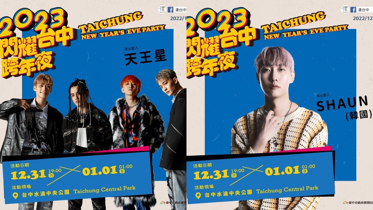 - 2023台中跨年發射188秒低空煙火!天王星、林宥嘉、周興哲、南韓創作歌手SHAUN,超強卡司狂嗨6小時
