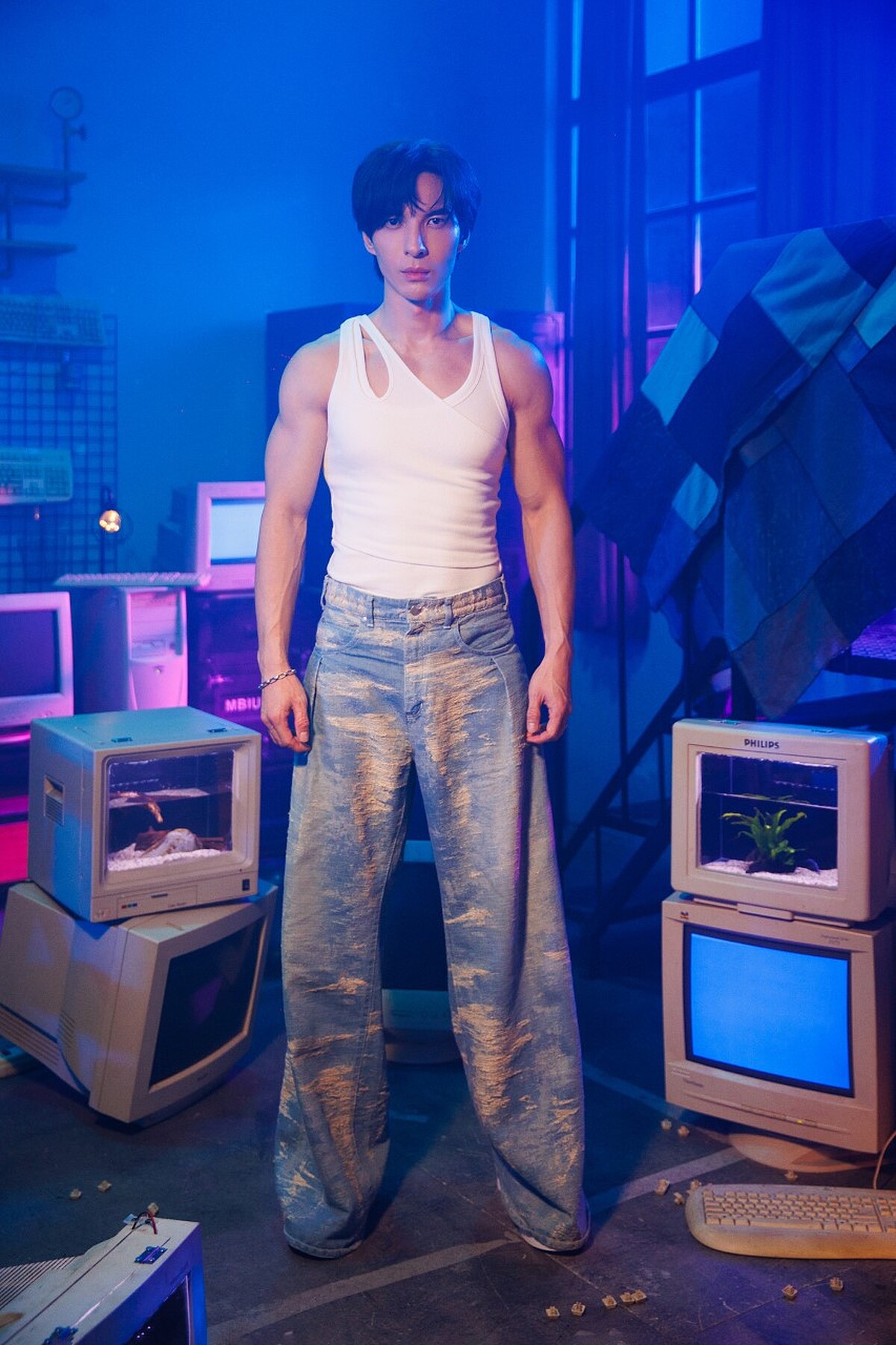 近來身上肌肉愈來愈健美的陳勢安,在〈連輸入法都記得你〉MV中展現出好身材,除了第一套帥氣皮衣精心設計的兩個空洞造型,隱隱約約露出背肌與肋骨之外,第二套兩件「吊嘎」的前衛造型更是將陳勢安的健壯身材展露無遺,當天他在現場看到拍攝畫面連自己都驚呼:「我的胸那麼大嗎?」