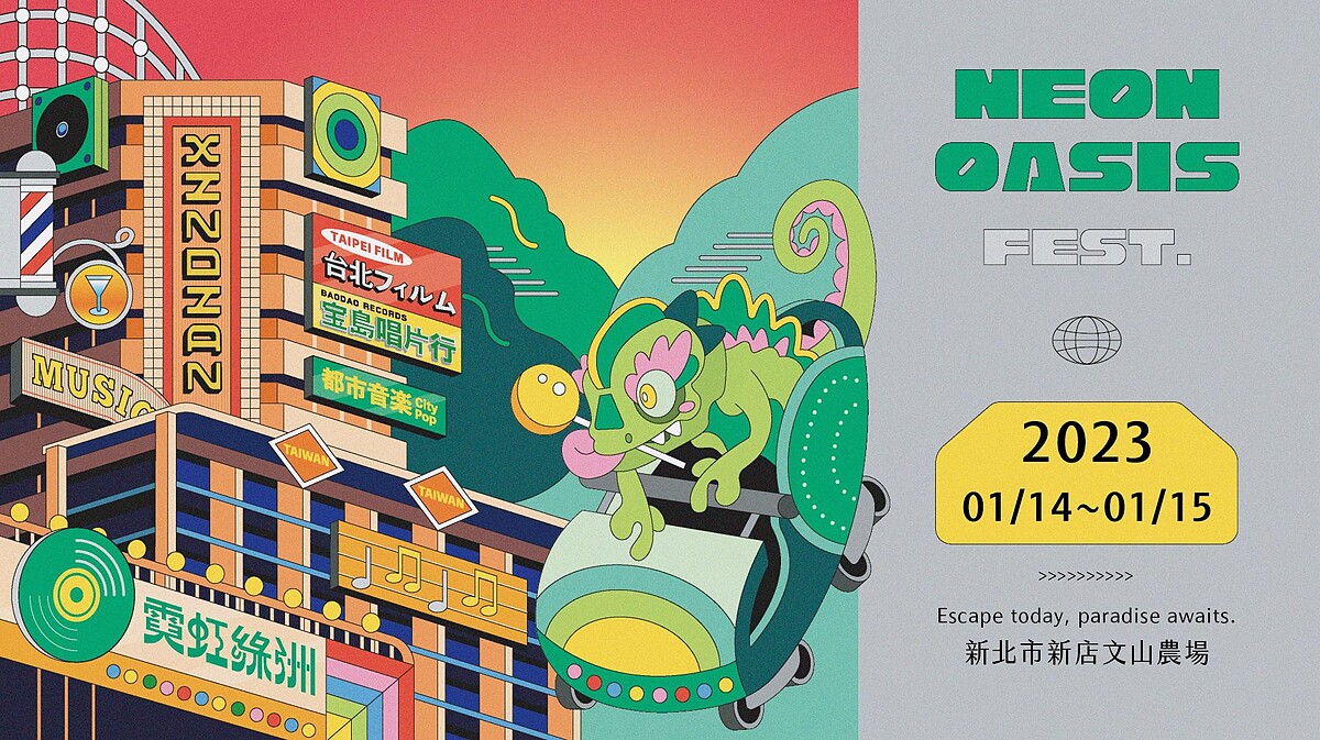 今年年初一月,霓虹綠洲音樂祭主辦團隊,在隨著各國疫情逐漸解封後,以「暌違已久的國際音樂交流盛會」作為選團宗旨,在新年剛到來的1月14、15日,於新北市新店文山農場盛大舉辦!集結台、日、韓、泰等20多組來自不同國家的音樂人,透過音樂祭能飛來台灣交流、碰撞出音樂場景新視野,期許能帶給聽團男女來自異地的耳道刺激,使疲勞又倦怠的身心在這片綠洲得以休憩、重新啟程。