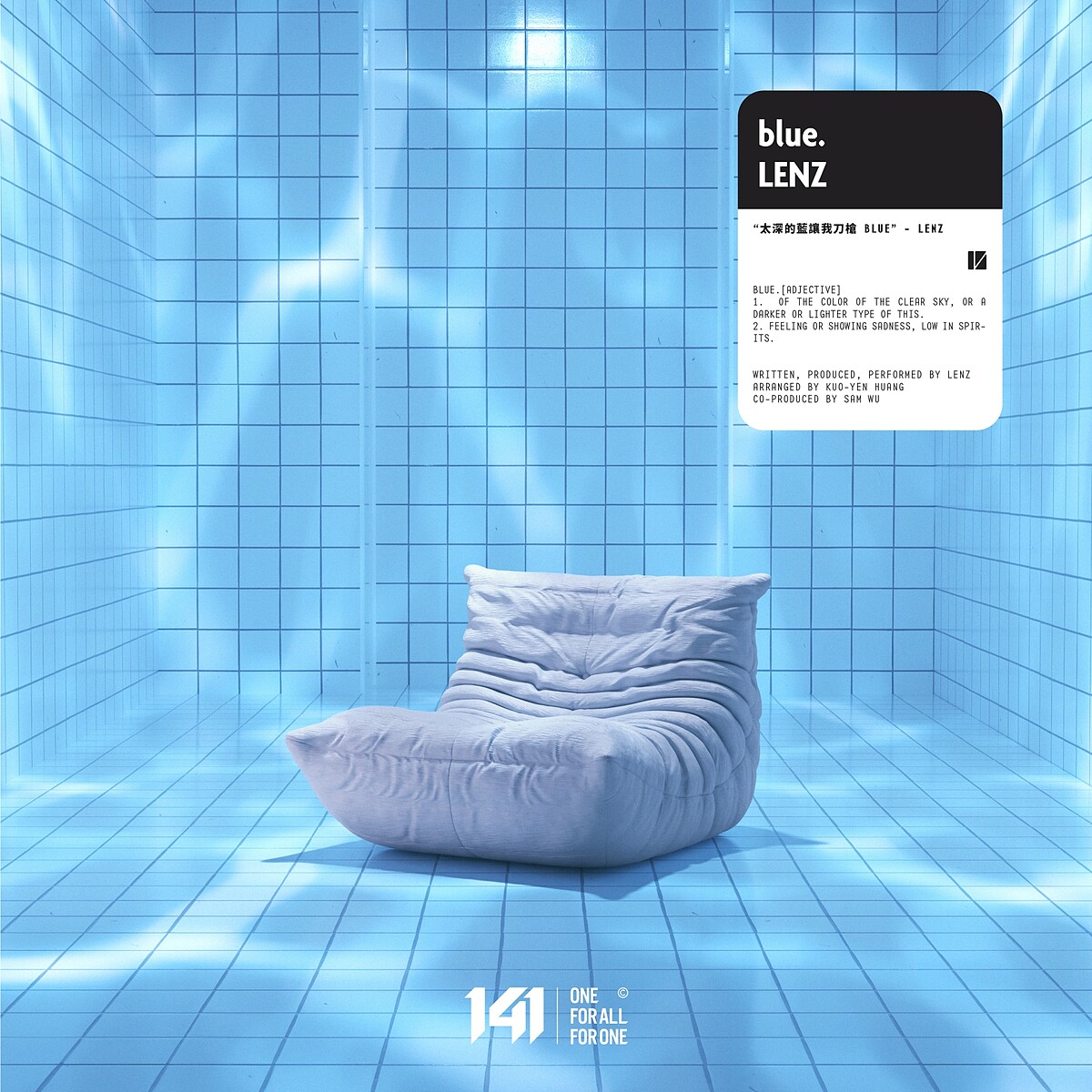 本次新歌〈blue.〉MV,是由一群年輕視覺藝術工作者組成的新興品牌 INTENTION ®️ 所創作,以簡潔又兼具創意思維的方式,構築出 LENZ 的腦內異世界。MV 特別打造水底特效,配合 LENZ 親自演繹在水位下哪裏都不能去的狀態,不停轉動的洗衣機,緩慢的鏡頭切換,彷彿時間被拉得很長,就像我們在低潮中試著旁觀自己的憂鬱,練習和藍色共處。