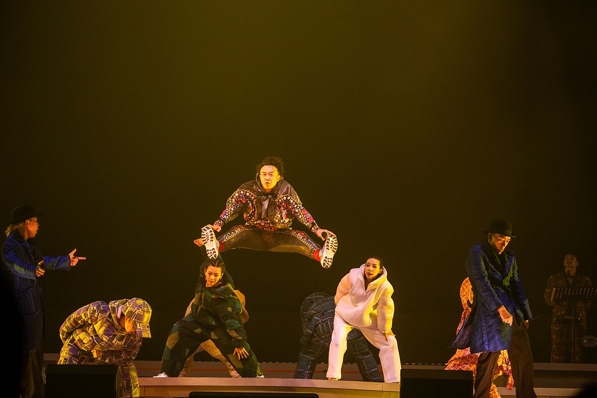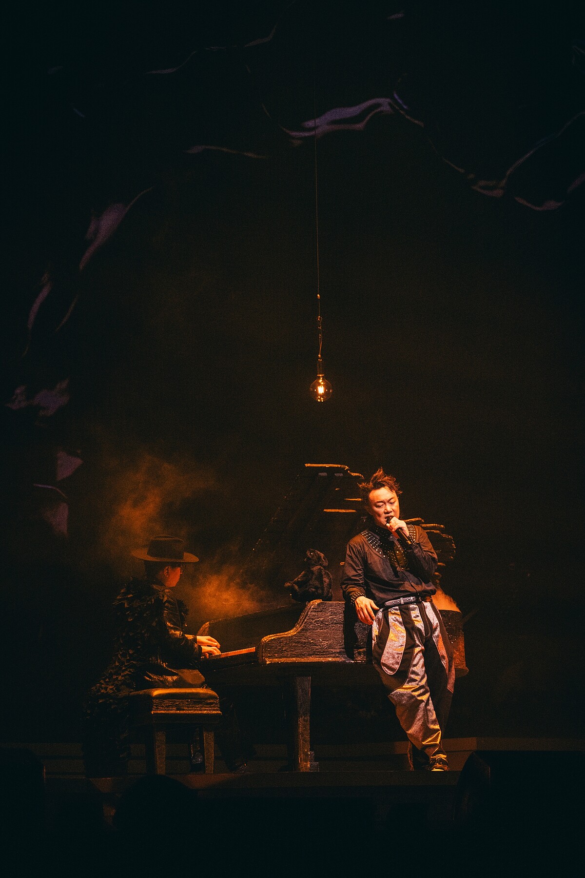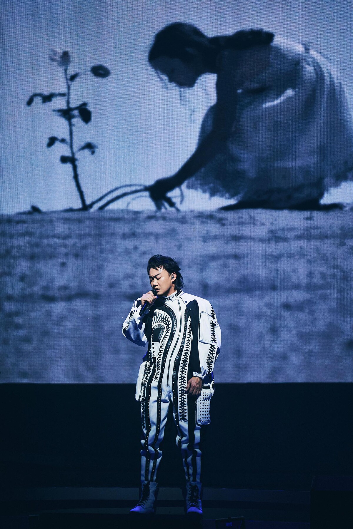 當地球面臨崩滅,一群禿鷹怪鳥隨著〈人神鬥〉出現,大屏幕上的洪水浪濤、漫天烏煙瘴氣、戰爭爆炸場面十分震撼;其後在一片荒涼中,小女孩送上手執的白花,全場為之動容,〈當這地球沒有花〉也帶給大家喘息與反思的空間。