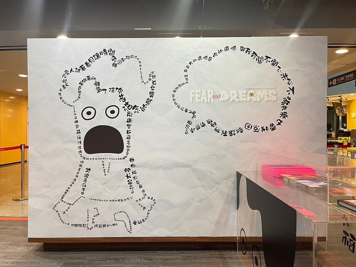好久沒來台北的 Eason,對這一直有著親切與熟悉的特殊情感,除了一下飛機迫不及待大啖牛肉麵,主辦單位更在後台擺攤「塵大市」,供應涼麵、鹹水雞、雞排、珍珠奶茶等,甚至還特別設計「Fear and Dreams」限定主題拍貼機,心心念念台式小吃的 Eason 忍不住當起市集「陳老闆」,吆喝大家吃美食、玩拍貼,自己則僅先淺嚐,待台北限定7場結束後再好好大快朵頤!