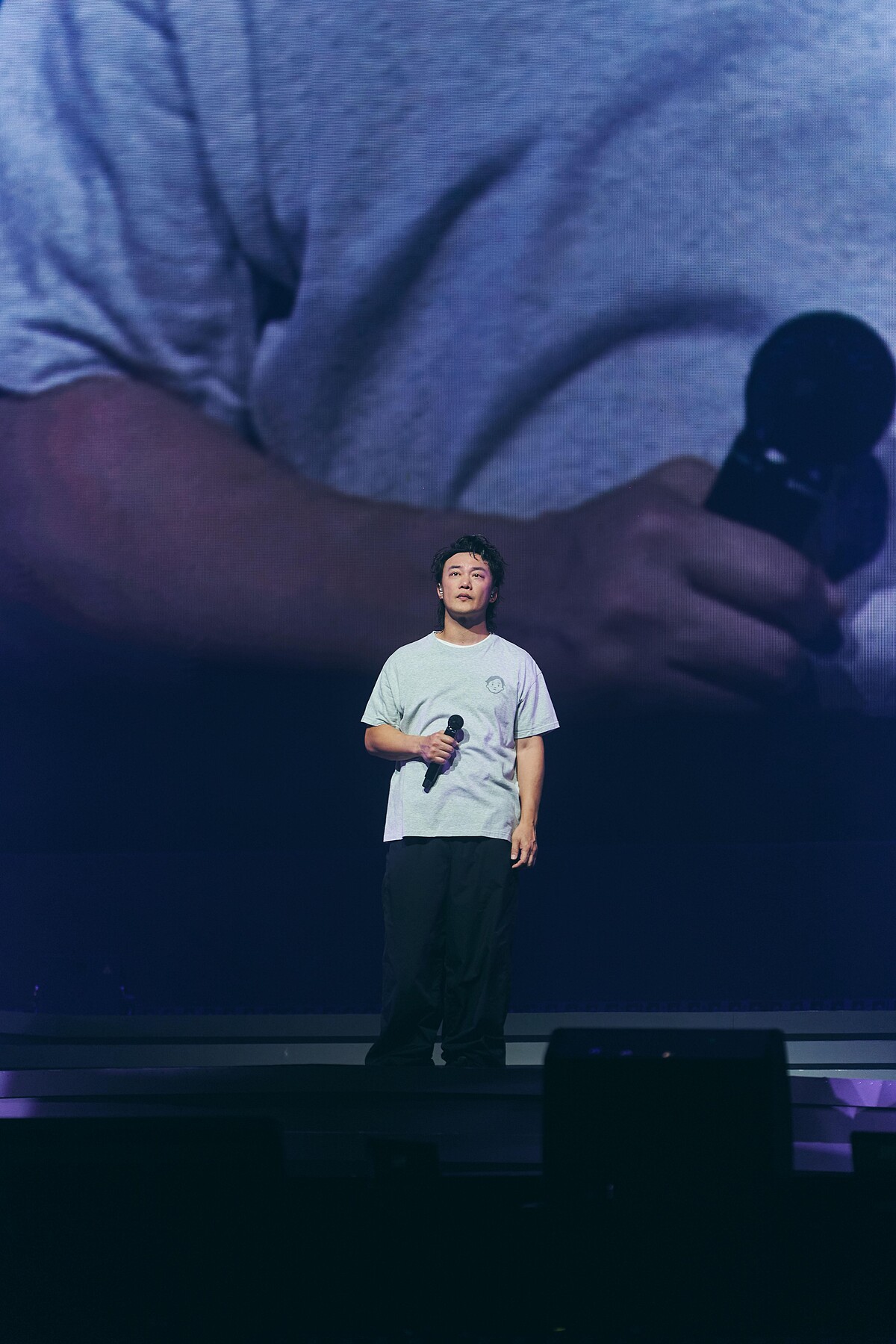 一口氣唱完28首歌後,Eason 停下來開口說:「我終於可以看清楚你們了,其實也沒有很清楚啦~因為我的近視、散光加深了,也開始有老花,沒關係,我們都會經歷的⋯⋯。」他想特別感謝每一位搶票的朋友,「你們真的太棒了!」隨即在台上跪謝,7分鐘完售,還完全不知道歌單的內容,台下歌迷們回應大喊「不重要!」而當台下粉絲應援舉牌「WE❤️EASON❤️TW」,Eason直呼:「我好感動,你們真的太厲害,非常愛你們。」更形容自己現在非常想做的就是跟每一個人都親嘴一下,幽默道:「一萬個人要親很久耶。」