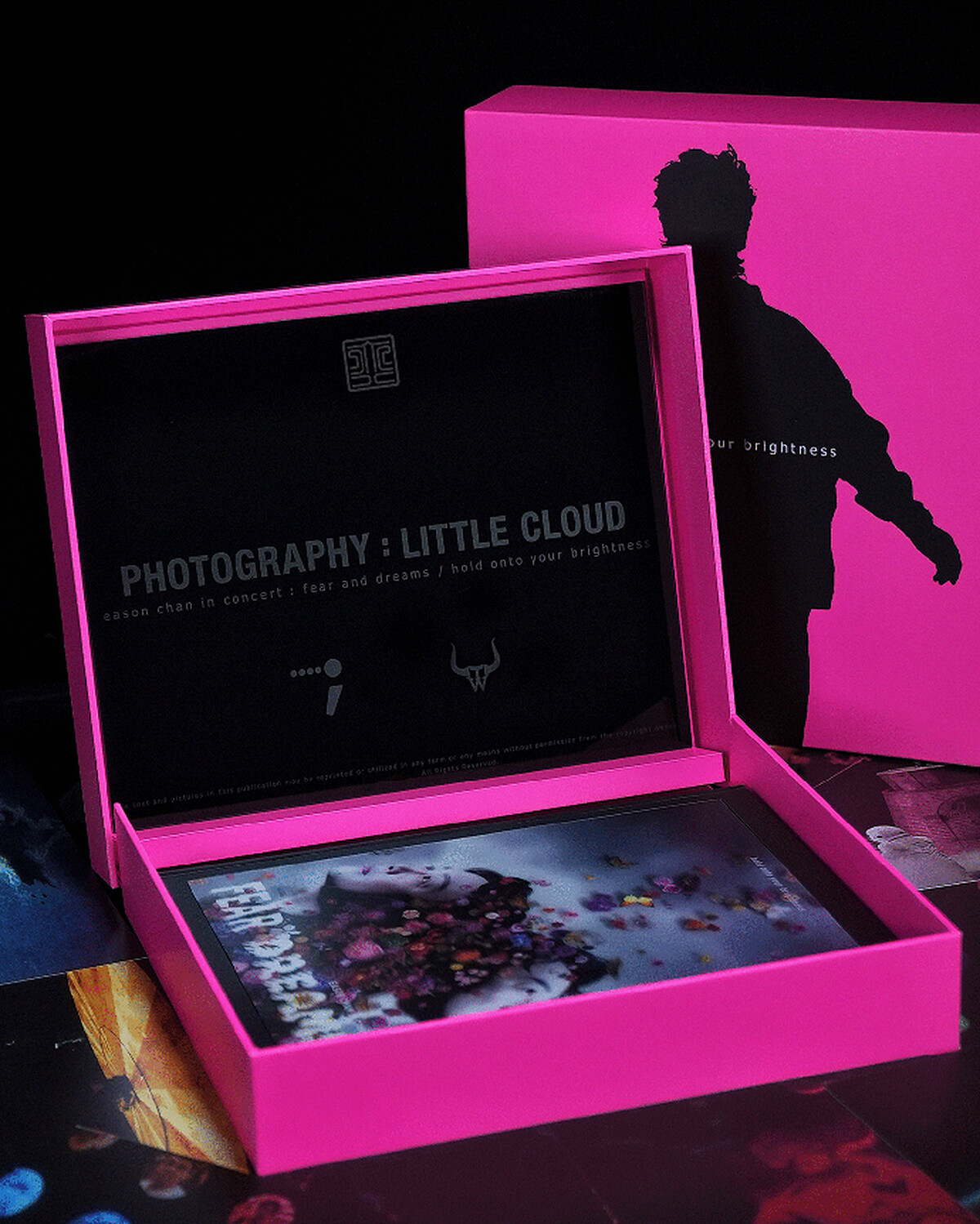 陳奕迅 Fear and Dreams 演唱會紀念攝影集BOX SET也開放限量網上公開訂購,內容收錄了 Eason 去年在香港體育館舉辦一共27場《陳奕迅 Fear and Dreams 香港演唱會》,為紀念是次演出,特別邀請葛民輝先生擔任設計總監,由專業攝影團隊紀錄台前幕後的精彩時刻,製作並推出Fear and Dreams演唱會紀念攝影集 BOX SET。