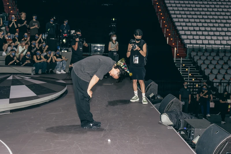 尾聲派對氣氛組曲唱畢,氣氛爆棚嗨翻!Eason真摯地感謝大家,他說:「你們的掌聲跟歡呼聲對我是很大的鼓勵,請用最大的掌聲給我身邊的舞蹈員、樂隊。」全場報以超熱烈掌聲,讓 Eason 直呼:「你們今天真的很厲害!」接著清唱一句「只能說我輸了⋯。」
