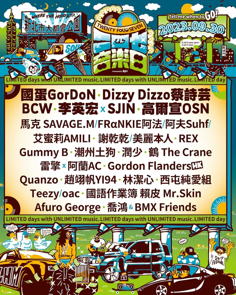 中秋連假最好玩的音樂盛會即將登場!由「嘻哈龍虎門」主辦的《2023 龍虎門【247】音樂日》,帶著橫跨嘻哈、R&B的稀有卡司與限定組合重磅回歸!延續「有限的日子,無限的音樂」的理念,演出將在9/30於新北三重大都會公園舉辦,結合嘻哈特色市集、BMX極限單車 Showcase 等周邊活動,號召熱愛嘻哈、街頭文化的朋友們一起過假日!