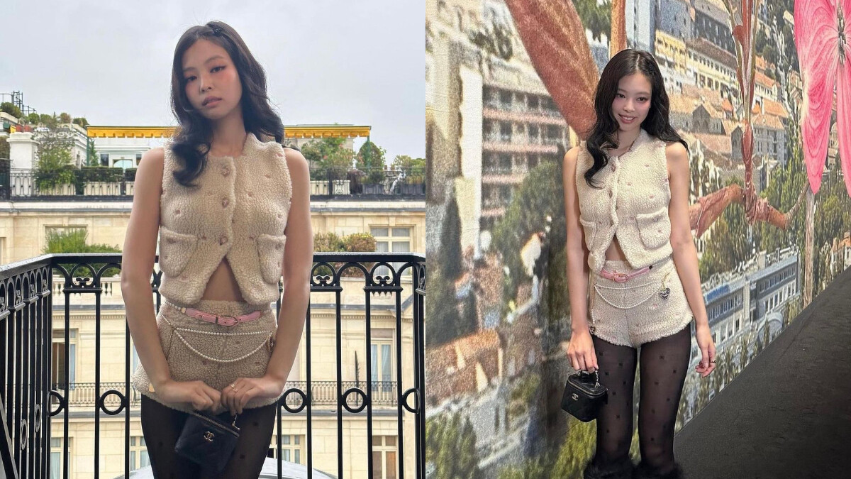 有著人間香奈兒之稱,Jennie日前也飛往巴黎參加香奈兒大秀,身穿毛茸茸泰迪熊套裝現身,配上透膚黑色絲襪,大秀纖細長腿,展現出俏麗的甜辣感。