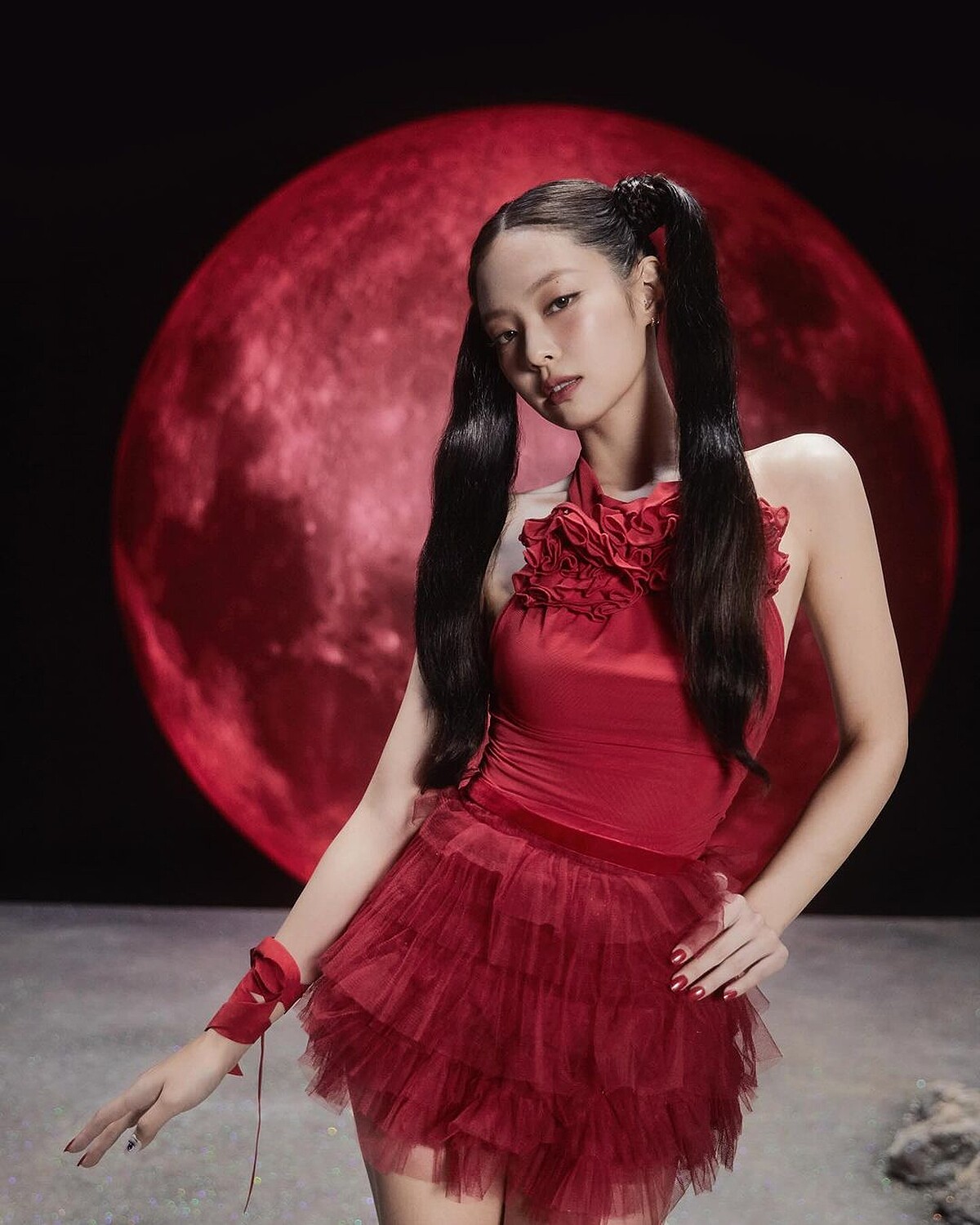 舞蹈版MV中可以看到Jennie和一名男性伴舞者合作的芭蕾舞動作,以昏暗的燈光作為輔助,讓他們的剪影投射在月亮的背景上,呈現出浪漫的雙人舞姿。