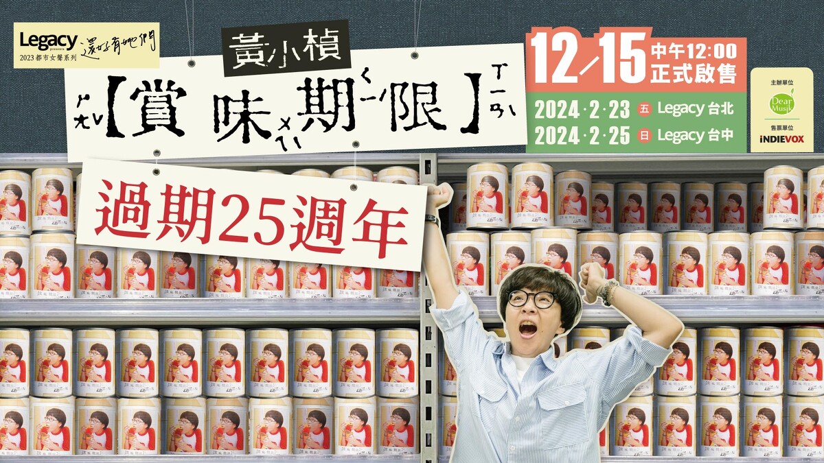 傳奇女聲黃小楨在1998年發行首張專輯《賞味期限》成為無數樂迷心中的經典,之後便在幕後低調創作多年。這次黃小楨第一次舉辦個人售票專場,演唱會名稱以首張專輯〈賞味期限〉為發想,延伸取作《賞味期限・過期25週年》展現她一貫的幽默趣味。專場視覺公開只見黃小楨的招牌蘑菇頭依舊,背景罐頭還印著〈賞味期限〉專輯封面,立刻讓歌迷們陷入熟悉回憶,大呼:「為什麼25年後的小楨還是沒變!」
