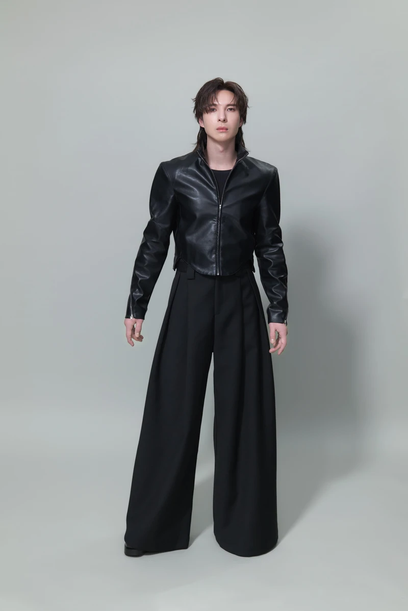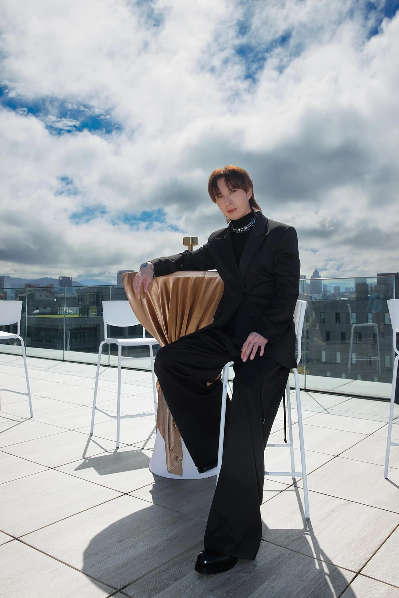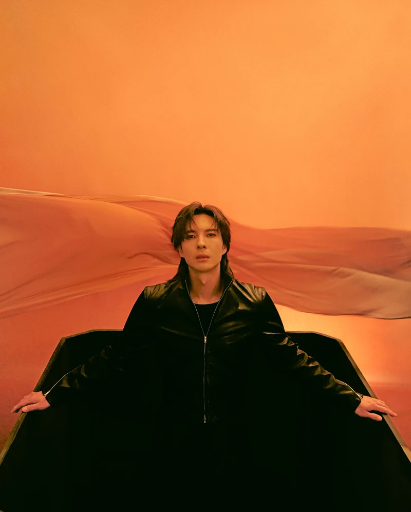 像是濃烈「紅色」氣勢披肩造型,搭配視覺搭配燃燒中的火焰,營造燃燒著有如「破風」般堅決信念的氛圍,展現陳勢安勢不可擋的魅力;而神秘「黑色」戰袍造型,配上背景的大地暖系色調,彷彿讓陳勢安化身情歌使者。