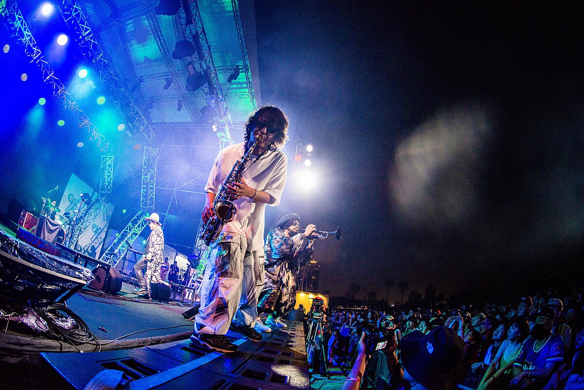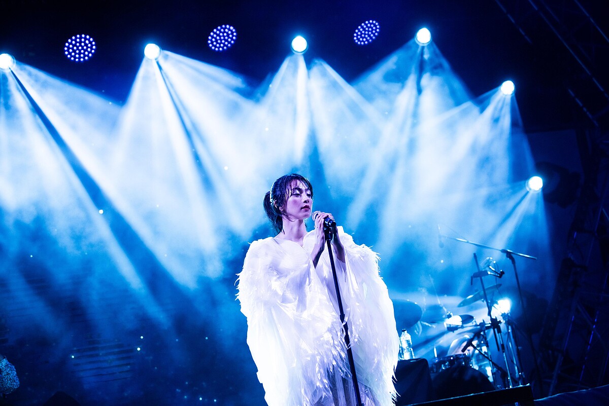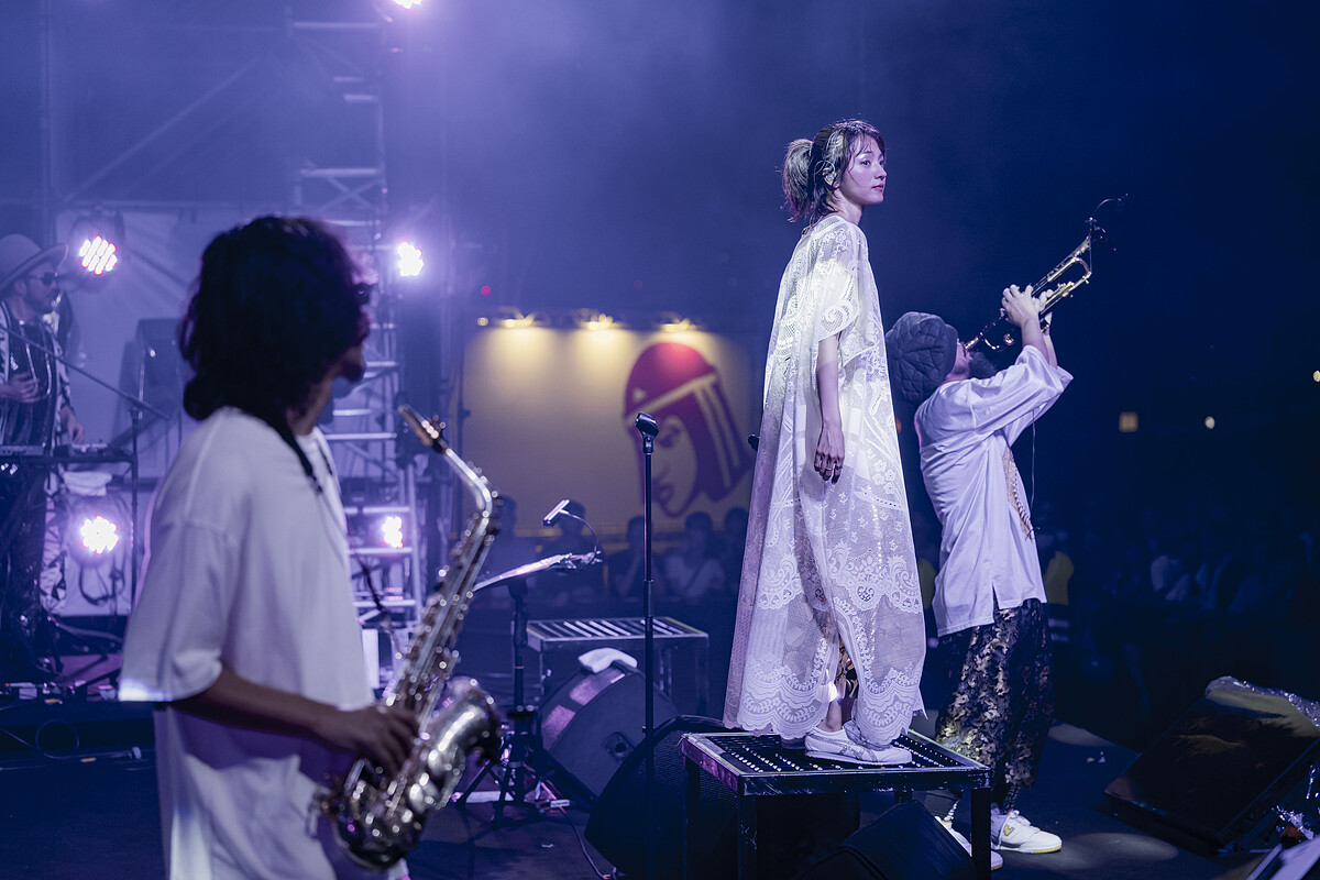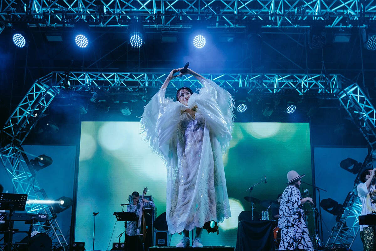「大港女神」滿島光則擔任首日女神龍舞台壓軸,攜手日本當代爵士樂團 SOIL&”PIMP”SESSIONS「動感」同台,開場就以爽快爆音爵士炒熱台下氣氛,隨後滿島光一襲雪白服飾登場,宛如仙女下凡之姿瞬間嗨翻全場。