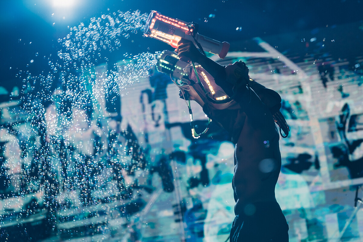 深受樂迷期待的閃靈,難得選在白天登台開唱,結合 5G 科技異地共創技術,打造一場絕無僅有的演出,樂迷也遵照既定「習俗」成為第一組在高雄流行音樂中心撒冥紙的樂團,立刻將氣氛炒熱到最高點震撼開場,展現天團氣勢。