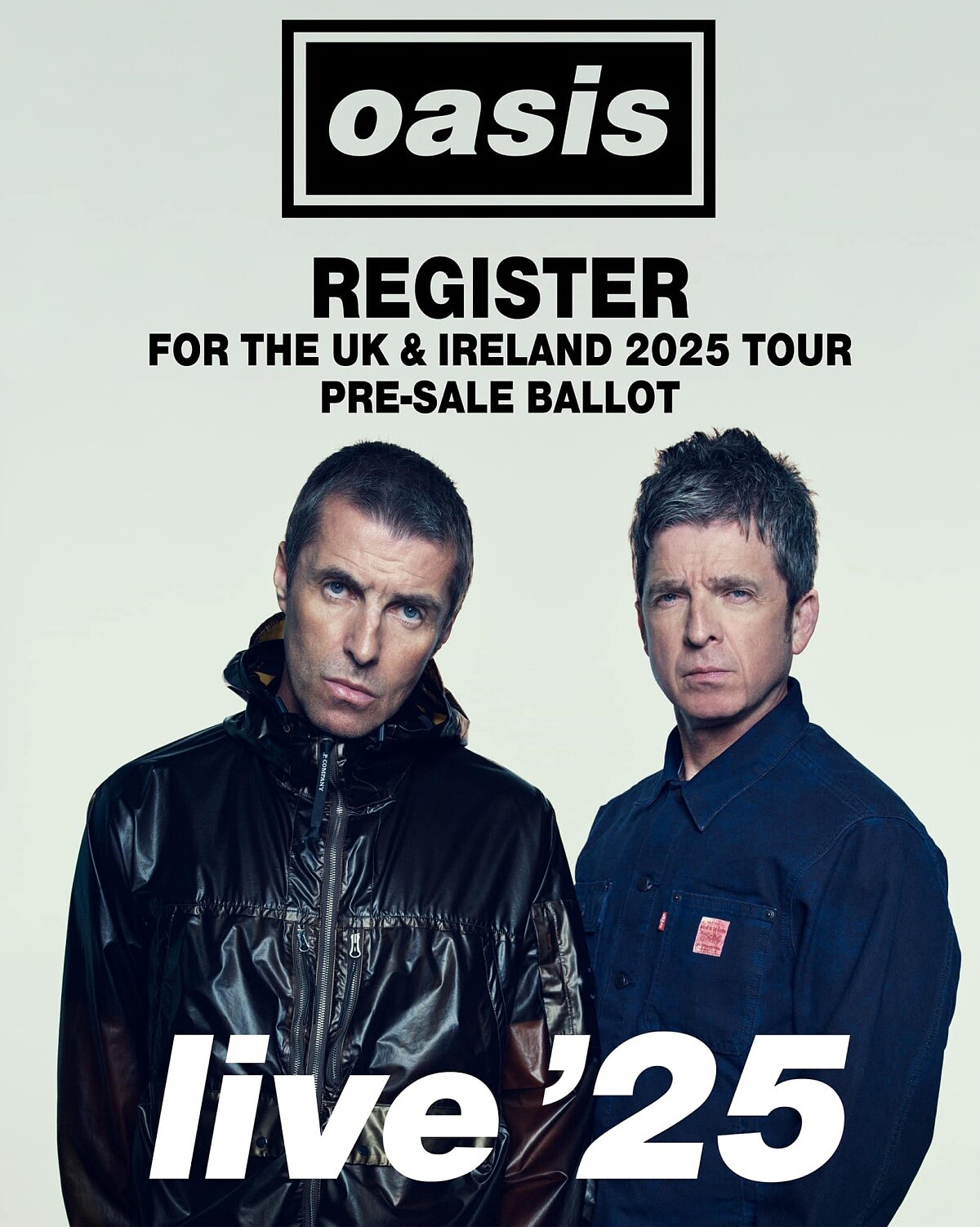 綠洲合唱團結束了多年來的傳聞,正式宣佈期待已久的英國和愛爾蘭巡演,這將是他們「OASIS LIVE ’25」世界巡演的第一站。2025年夏天,綠洲將會在加的夫、曼徹斯特、倫敦、愛丁堡和都柏林演出,這將是他們明年在歐洲唯一的演出,也是本世紀最盛大的現場音樂活動之一。