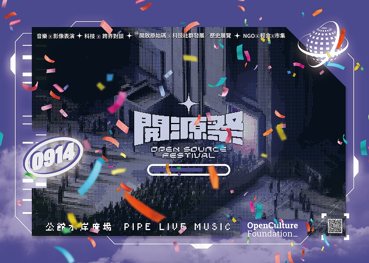 開放文化基金會(Open Culture Foundation,簡稱 OCF)成立十週年,策劃以科技跨界為主題的盛典「開源祭」,於 Pipe Live Music 及公館水岸廣場華麗登場,邀請多位知名音樂人及科技領域專家共同歡慶,探索未來科技與創意的無限可能。近期也壓軸公布與林強的共創計畫,林強將攜手義大利藝術家 Luca Bonaccorsi,首次表演其基於「開放」與「分享」兩大核心理念所創作的全新專輯《時間浸漬 BIOEROSION》,展現音樂及視覺藝術的創新融合。