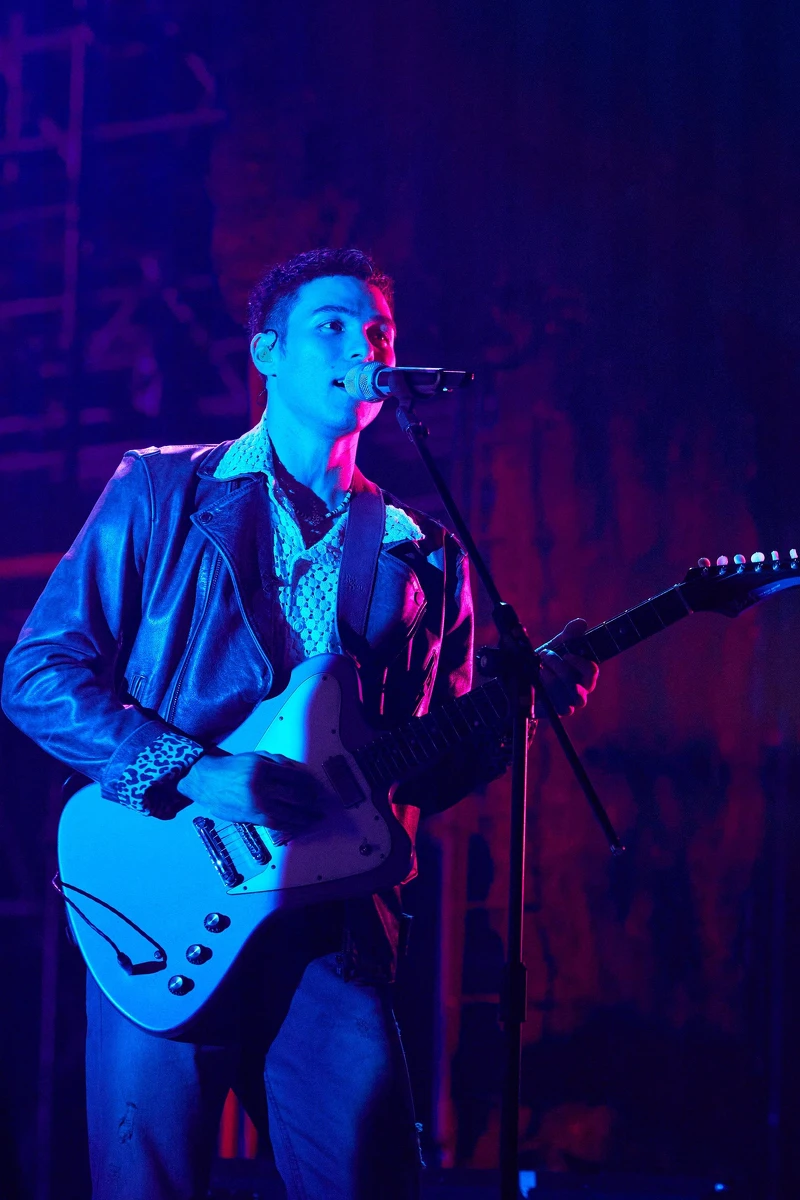 在MIYAVI鋒利清亮的三味線與鳳小岳音色溫潤的古琴對奏下,黃瀟的沈浸式獨舞勾動人心,隨著漸快的節奏,尤長靖與朱星杰加入的三人排舞,更展現即將表白的喜悅與歡快氛圍,讓場邊觀看演出的哥哥們讚不絕口,豐富又有層次的表演內容,不僅每位成員各司其職、各有亮點,高質量的音樂性質成就魔幻般舞台大秀。