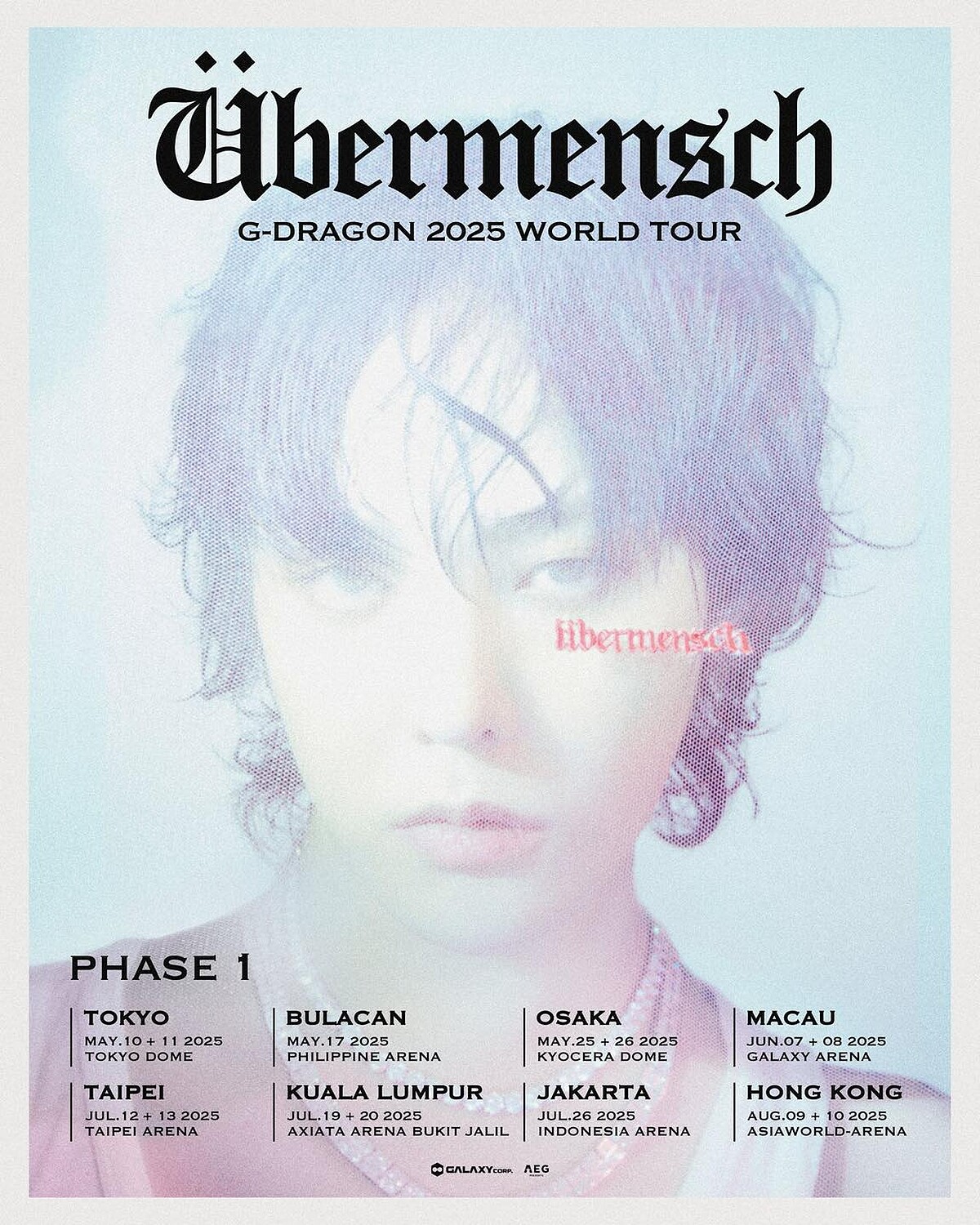 韓流天王G-Dragon權志龍(GD)將展開世界巡演《G-DRAGON 2025 WORLD TOUR [Übermensch] PHASE 1》,並在睽違8年要再度登台,驚喜宣布將在7月12日、7月13日兩天站上台北小巨蛋開唱!