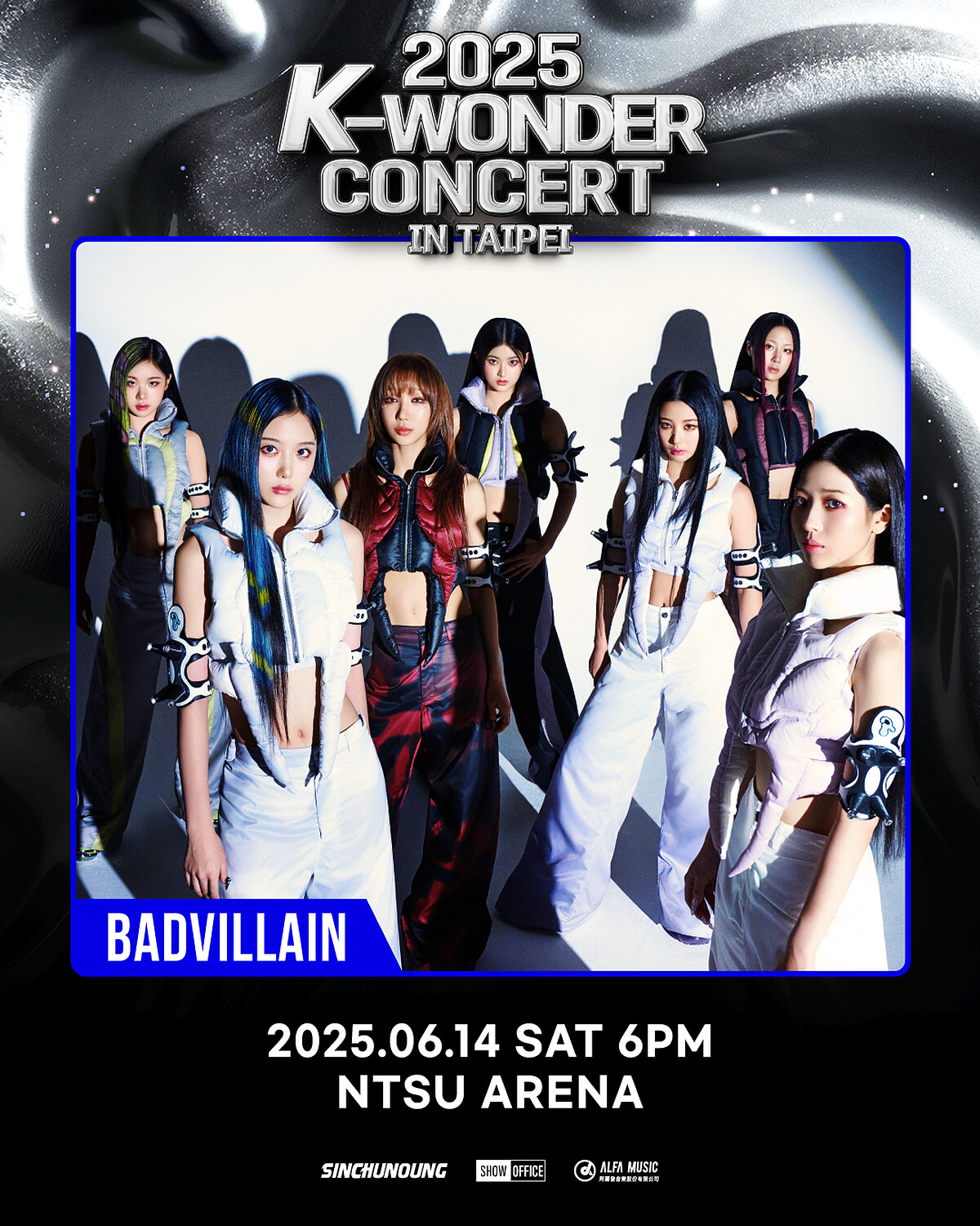 值得關注的還有新生代女團BADVILLAIN,7位成員其中有編舞家Chloe Yang、前《街頭女戰士》選手Emma、前《放學後的心動》選手HU'E和YunSeo、澳籍成員INA、Vin以及忙內KELLY,雖然出道時間短,但她們以鮮明定位與強烈的舞台風格迅速擄獲年輕世代目光。強勁的舞台魅力加上獨特的惡棍概念,在新生代女團中闖出自己的路,充滿自信又游刃有餘的控制力,完全不像剛出道的新人,這次將是她們首次到台灣演出,預計將會以又辣又帥的「惡棍系」形象,展現初登台的霸氣宣言。