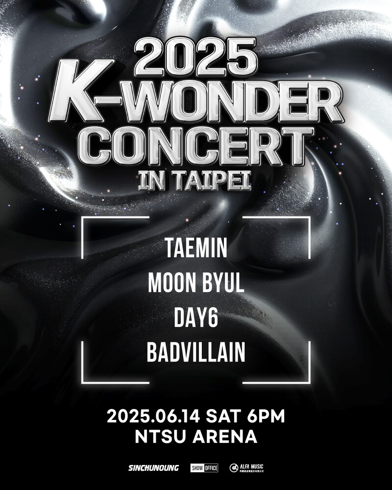 全新韓流音樂盛典「2025 K-WONDER CONCERT IN TAIPEI」即將登場,這次匯聚4組風格迥異、實力堅強的藝人,從DAY6、泰民、玟星到BADVILLAIN,將輪番登台帶來精彩演出,總時長將長達160分鐘。