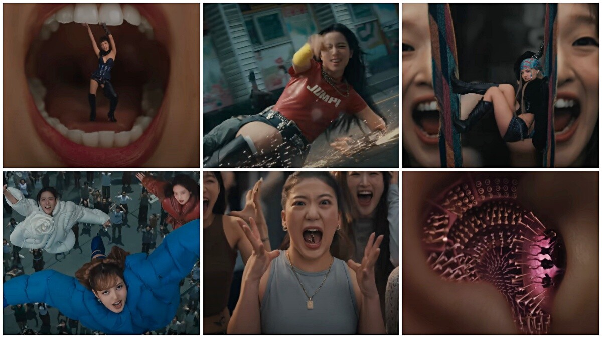 早前拍攝過 Lisa 與 Rosalía 合作的〈New Woman〉,美國導演 Dave Meyers 的作品不斷打破視聽者的想像。Rihanna、Ariana Grande、Kendrick Lamar 以及 Billie Eilish 都曾與他合作過。他擅長以意想不到的幽默形式,打造出獨特的奇幻宇宙,玩出讓人莞爾又震撼的視覺饗宴。這次,他把視野拉回首爾,無論是街上瘋狂撞牆捶地的人們,或是在腦洞裡出現的 Lisa,以及嘴巴中探出的團員們,甚至是用身體滑壘出火花的 Jisoo,畫面看來好笑又充滿創意,讓人過目不忘。