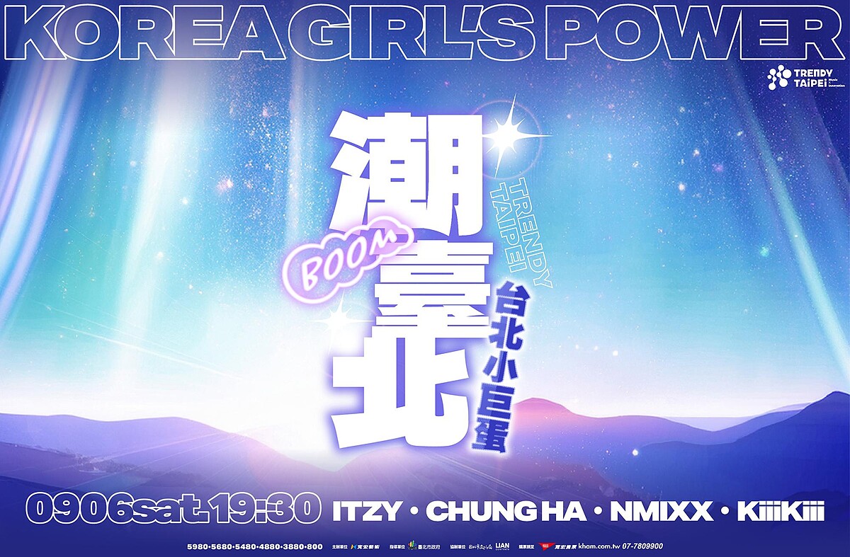 又有新的韓團拼盤演唱會要搶票了,潮台北演唱會《Trendy Taipei KOREA GIRL’S POWER》正式公開演出名單,宣布ITZY、NMIXX、請夏與KiiiKiii將齊聚開唱,地點就在台北小巨蛋。