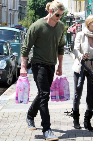 雖然在大螢幕面前是飾演拯救世界的雷神索爾,下了戲的Chris Hemsworth仍是一家大小的「超級英雄」。外出購物時仍然不忘運用他那十分健壯的二頭肌幫家人採買生活用品。