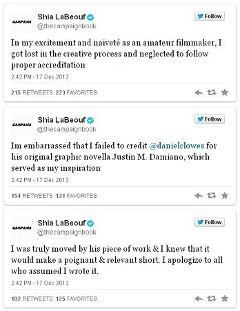 演出過《變形金剛》和《華爾街:金錢萬歲》等…多部知名電影的演員西亞李畢福(Shia Labeouf),在戲劇上已獲得成就的他不甘屈居於演員的角色,在去年他以導演的身分拍攝了短片" HowardCantour.com "並也風光的參加了坎城影展首映。不過在首映之後,卻馬上爆出本部影片的劇本根本不是出自於西亞李畢福之手,而是剽竊了漫畫家Daniel Clowes在2007年的漫畫作品"Justin M. Damiano."。
