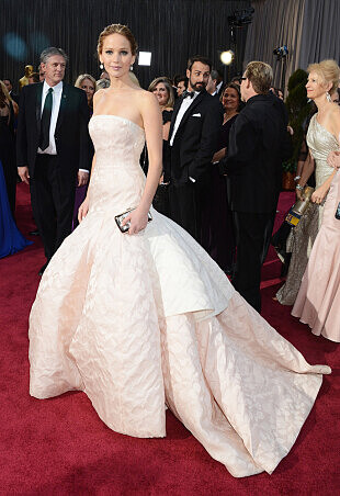 珍妮佛勞倫斯(Jennifer Lawrence)最近聲勢真的如日中天!不僅圈外人氣高漲、圈內人緣絕佳,連一線大品牌都好愛她。眾所皆知,最近的重要典禮和首映會紅毯,包含她在去年要上台領取奧斯卡最佳女主角時的那經典一跌,好幾次Jennifer深獲好評的禮服,都是來自於Dior高級訂製服。