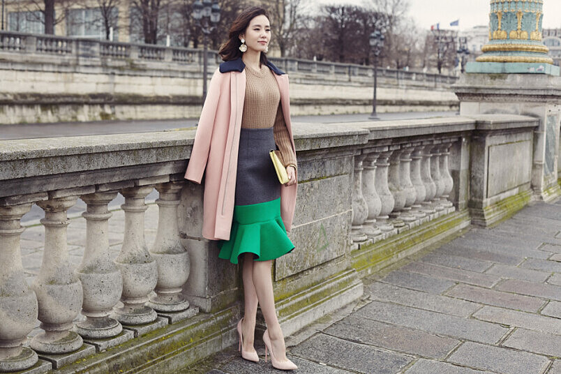 此行中,她還展演了多套時裝,裸粉的法式大衣大膽搭配上色塊拼接的洋裝,是女人的自信風采;溫柔的白色套裝佐以亮眼的芥末黃色,是女人的優雅嫻靜;經典的圓領小外套,卻跳脫框架地以年輕的丹寧布料呈現,是女人的可愛俏皮;一身簡單的全黑絲質褲裝,則是現代女人的俐落品味。劉詩詩以她獨特的個人氣質,為2014的巴黎時裝週注入一股不同以往的清新力量。