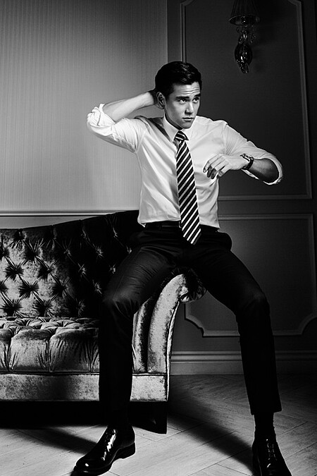 一見到彭于晏,就令人精神為之一振,行程滿檔的他不見一絲疲憊,以燦爛的露齒笑容迎接所有工作人員;他眼神裡的堅定和自然而然散發出來的優雅神態,更是叫人難忘。映照《破風》中的 Slogan─「態度決定一切」,亦或身為浪琴代言人的優雅姿態,現在的他,宛如從男孩成為男人,男孩子氣的衝動熱血已然消逝,只剩下淡然的自在與從容的神態。