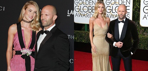 相戀超過5年,光頭硬漢傑森史塔森Jason Statham和變形女蘿西杭亭頓Rosie Huntington從以前就是最閃情侶組合。眼尖的各位,可以發現蘿西在本屆金球獎紅毯上手上曬出的超大鑽戒,可是亮到讓人睜不開眼。據說是小倆口去度假時,傑森趁著甜蜜之旅向她求婚,而蘿西也說YES囉,實在太令人羨慕啦!