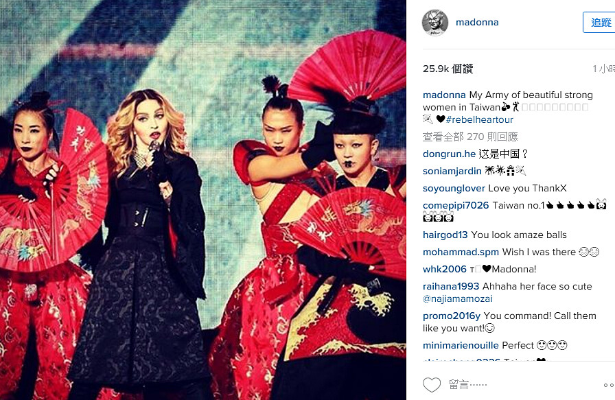 瑪丹娜在個人IG po文感謝台灣粉絲的熱情